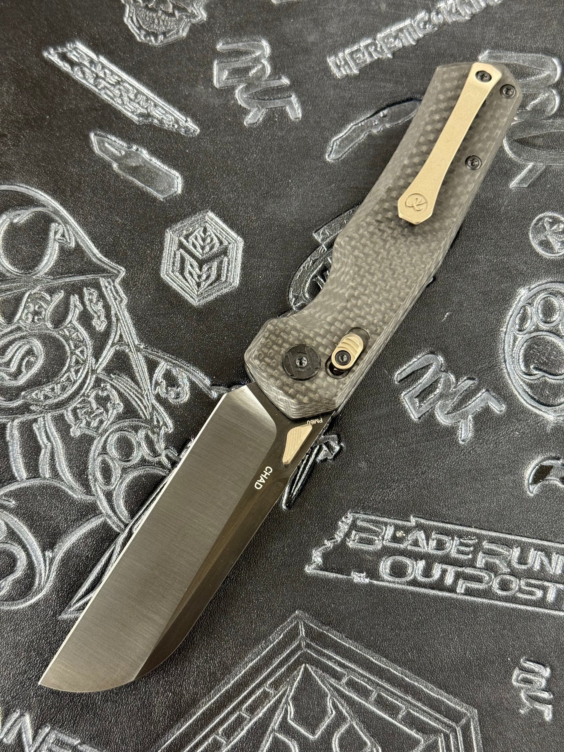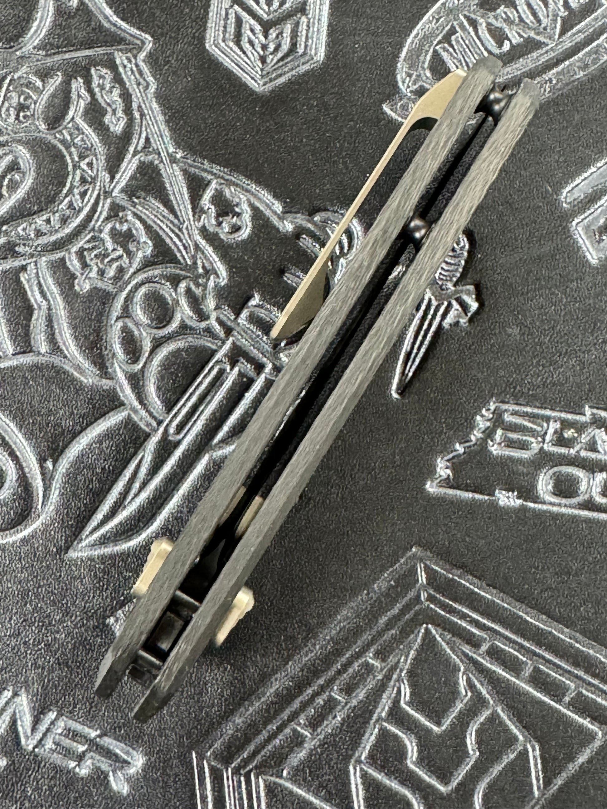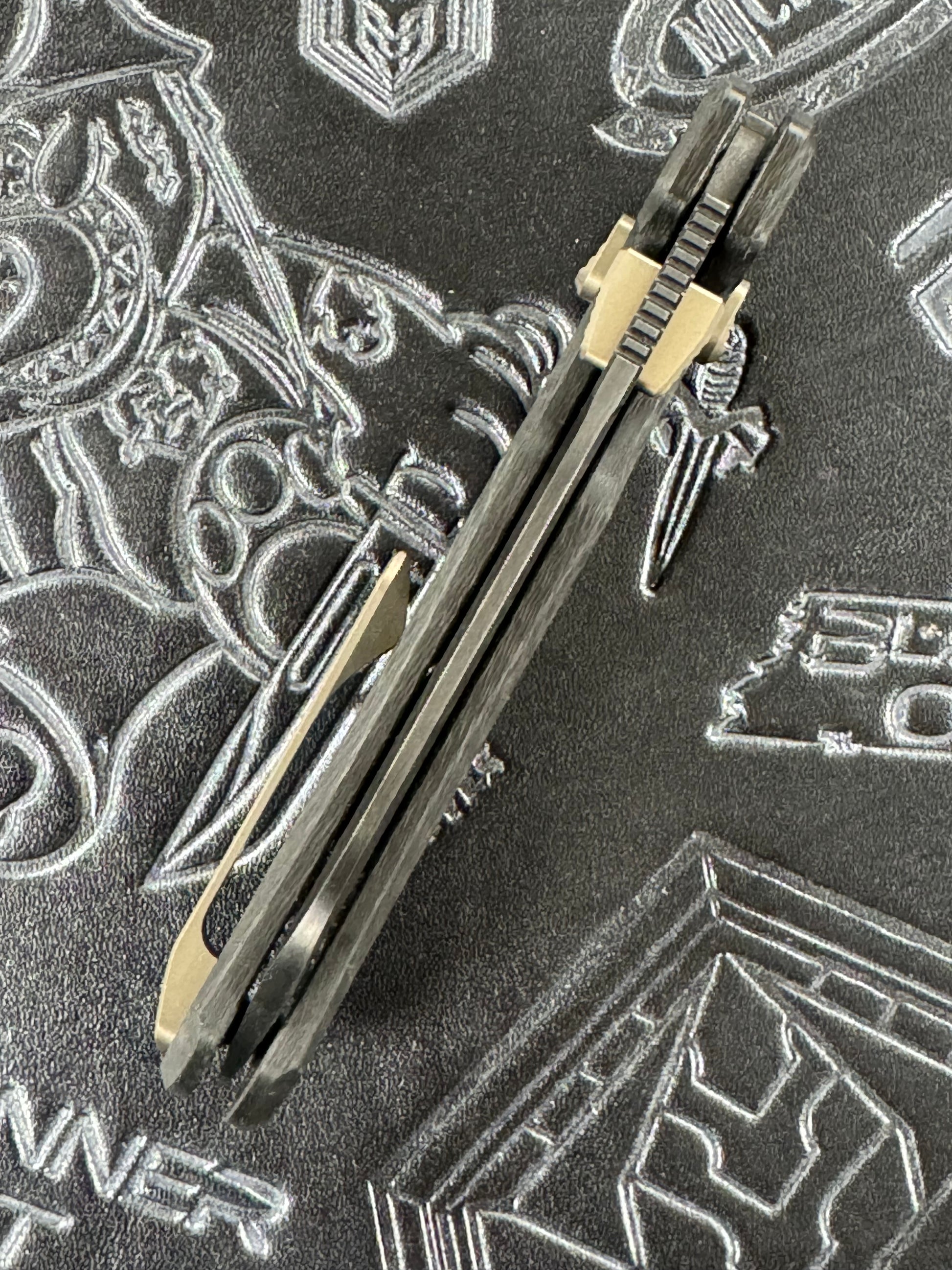KUNWU CHAD FOLDING KNIFE BLACK CARBON FIBER HANDLE PM60 PLAIN EDGE DLC SATIN FINISH SX703F
