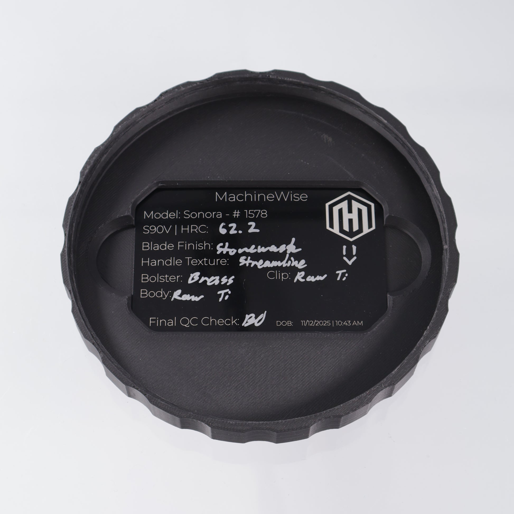 Machine Wise Sonora #1578 - Raw Streamline Texture Titanium w/ Brass Bolster - Stonewash S90V