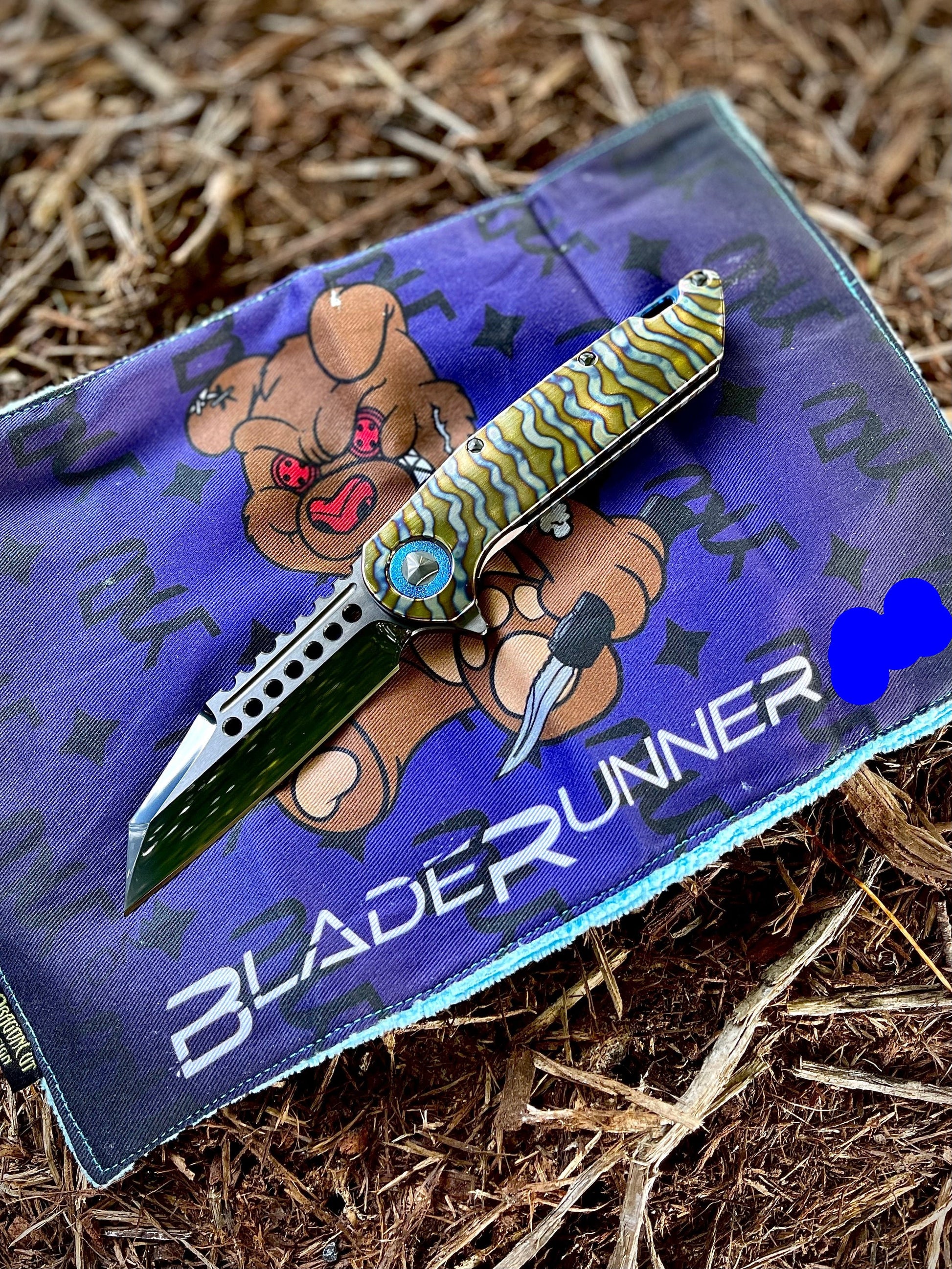 Marfione Custom Warhound DLC Diamondwash Flamed Titanium w Blue Titanium Accents & DLC Two Tone Hardware