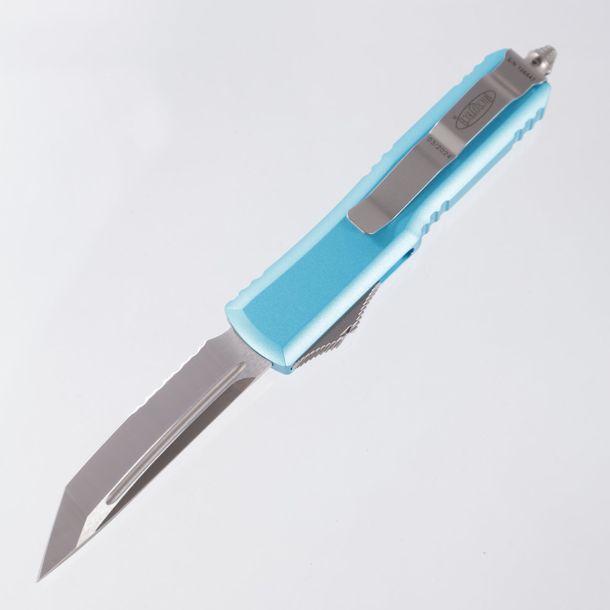 Microtech UTX-85 - Turquoise Aluminum - Satin Partial Serrate M390 - 233-5 TQ