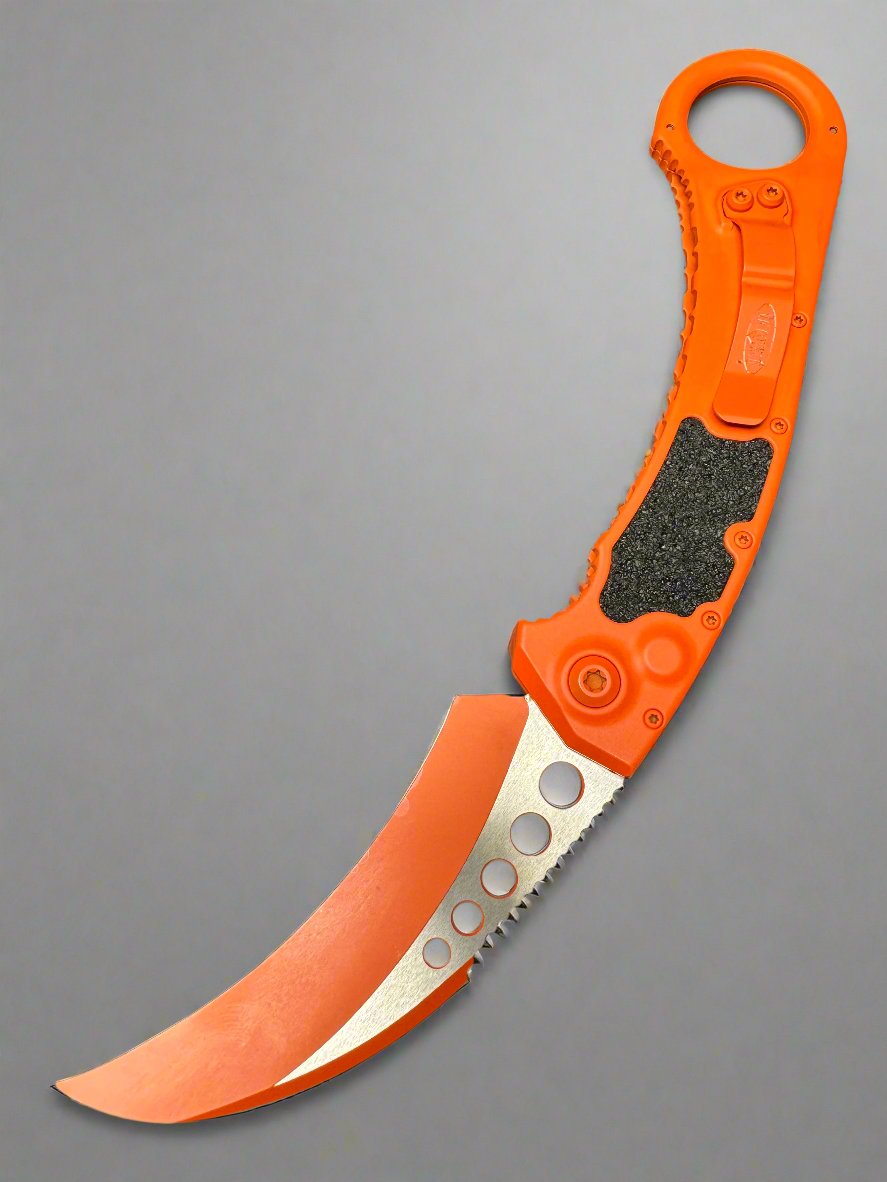 - Blade: 4" M390 Hawkbill (Orange Cerakote Two Tone)