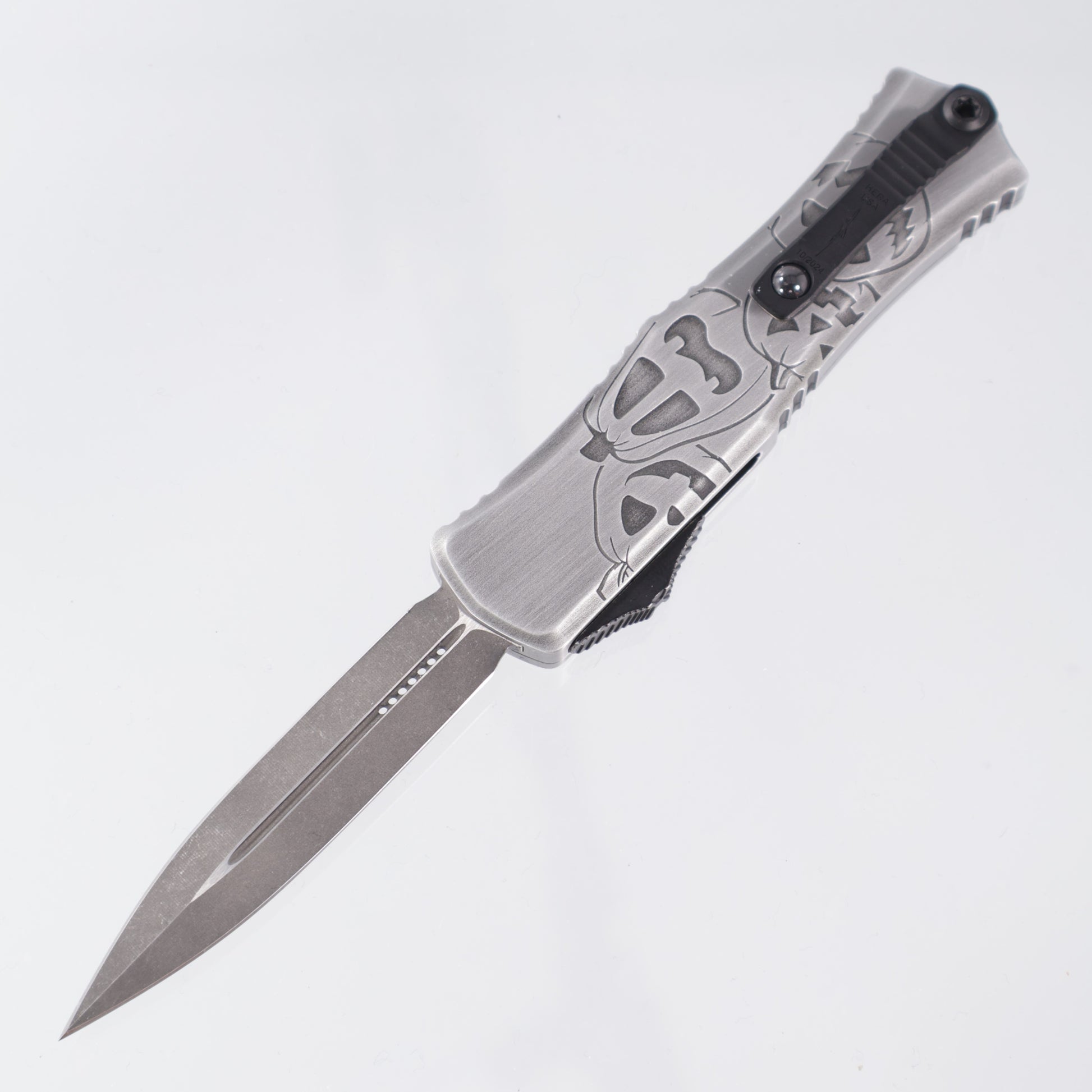 Microtech Hera 2 Mini - Halloween Jack-o'-Lantern Brushed Metal - Apocalyptic Double Edge M390MK - Signature Series - Hera II Mini 1702M-1 BMHWJLS