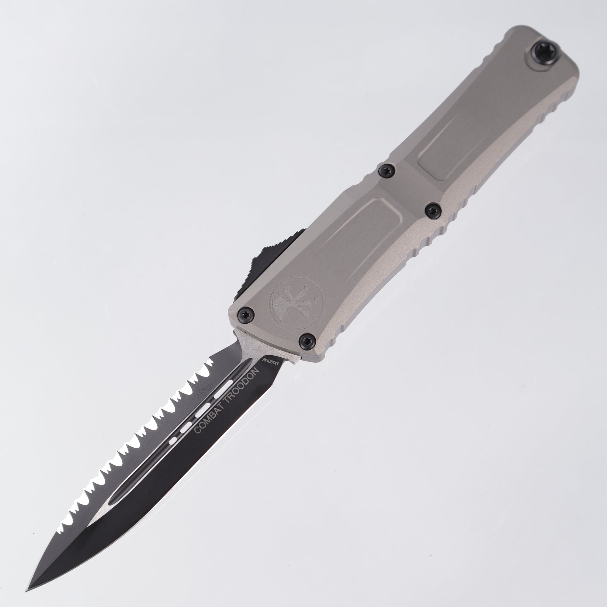 Microtech Combat Troodon Gen 3 - Black Double Edge, Full Serrated Natural Clear - Gen III 1142-3 NC