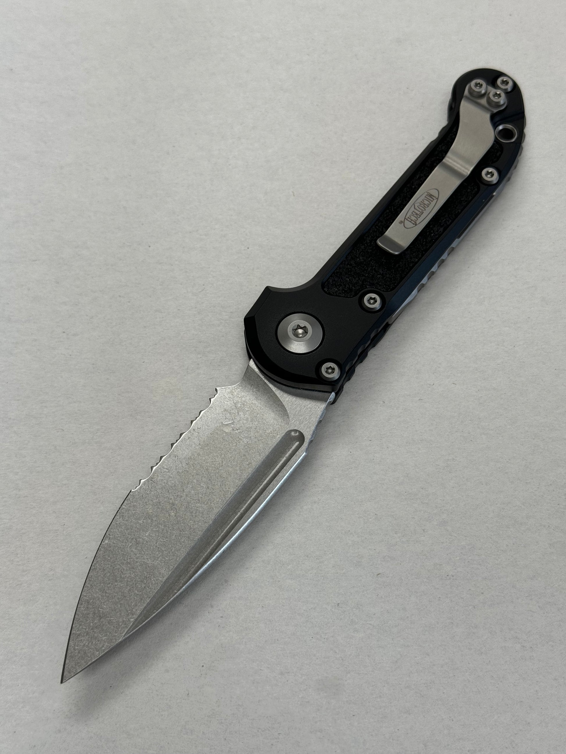 Microtech Knives LUDT Gen III Stonewash Partial Serrated Drop Point w/ Black Handle 1135-11