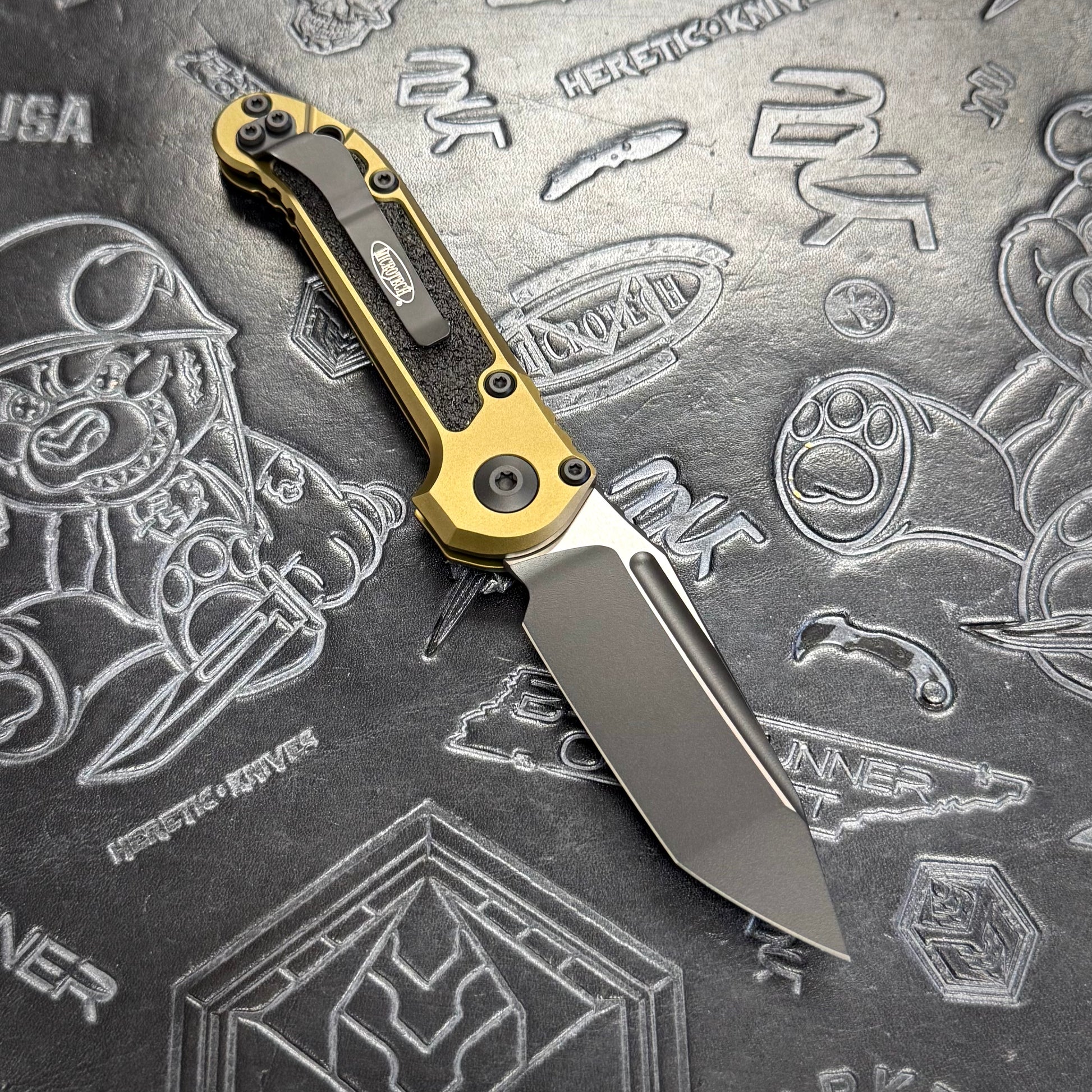 Microtech LUDT Gen III featuring OD Green handle scales & a tactical black Tanto M390MK blade