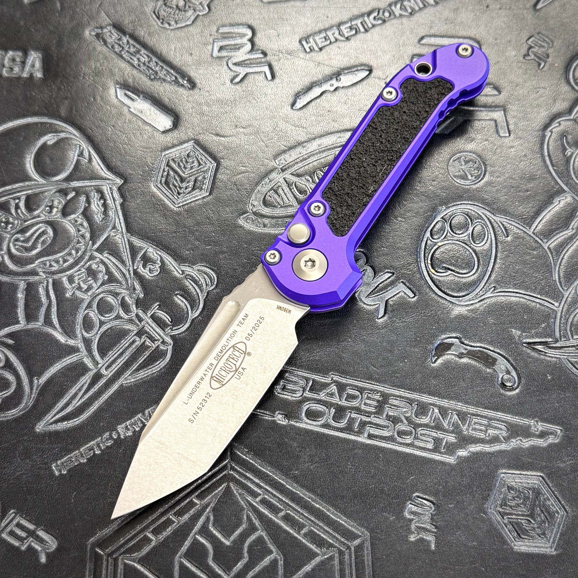 Microtech LUDT Gen 3 featuring a purple handle & a Stonewash M390MK blade!