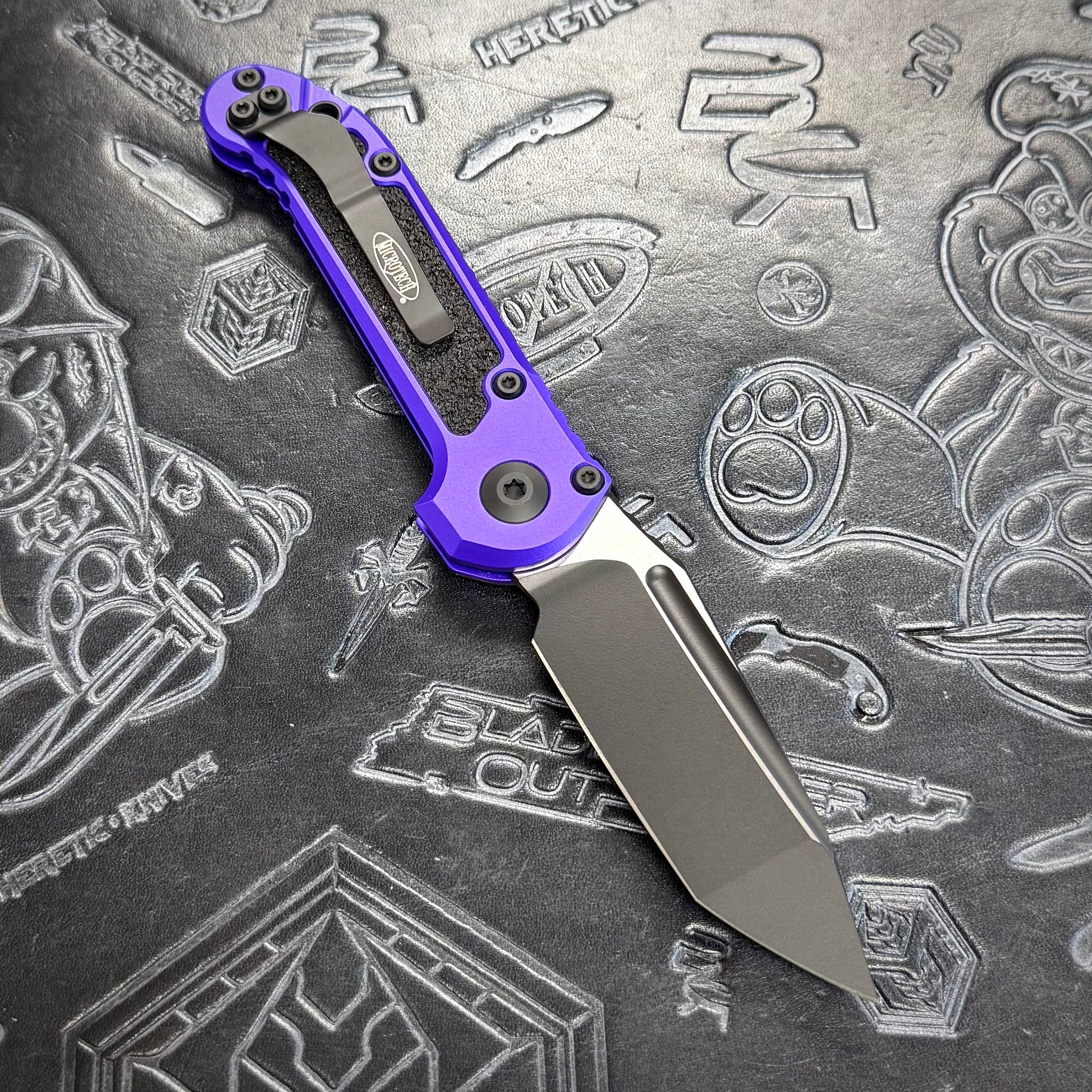Microtech LUDT Gen 3 featuring a purple handle & a tactical black tanto M390MK blade!