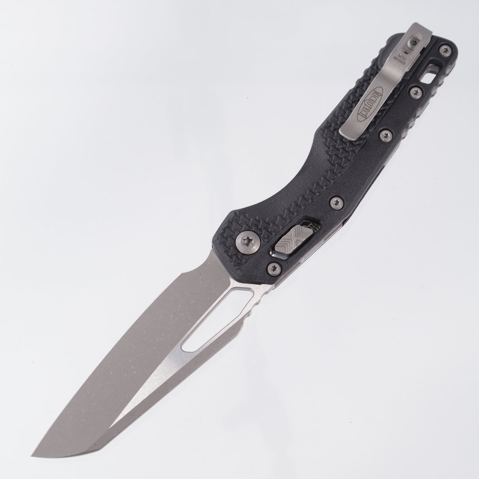 Released in 2023, the MSI (Microtech Standard issue) is Microtech's first knife to feature its fantastic RAM-LOK technology. This tough take on the crossbar lock features Microtech's signature step pattern made famous by the actuation switches on the Ultratech series. The large blade cutout gives ample room for reverse middle finger flicks as well as standard slow-roll thumb opening with or without gloves. If neither of those is your preference, then simply pull down on the RAM-LOK and the blade flies open with a simple wrist flick.