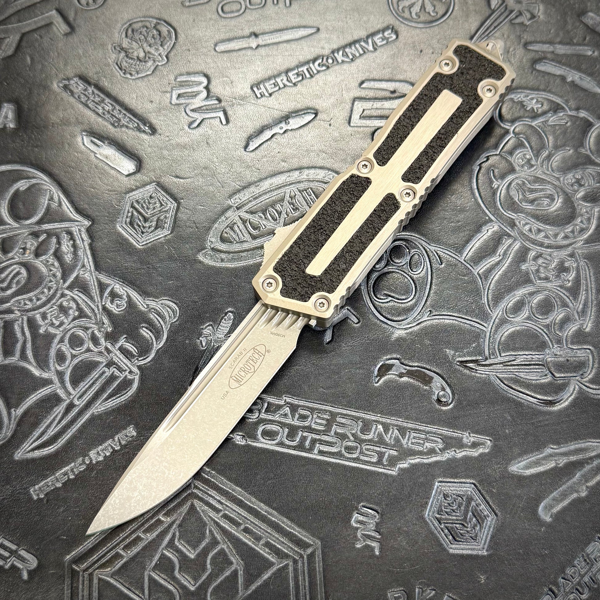 Microtech Scarab II Gen3 featuring a Natural Clear chassis & apocalyptic single edge M390MK blade!
