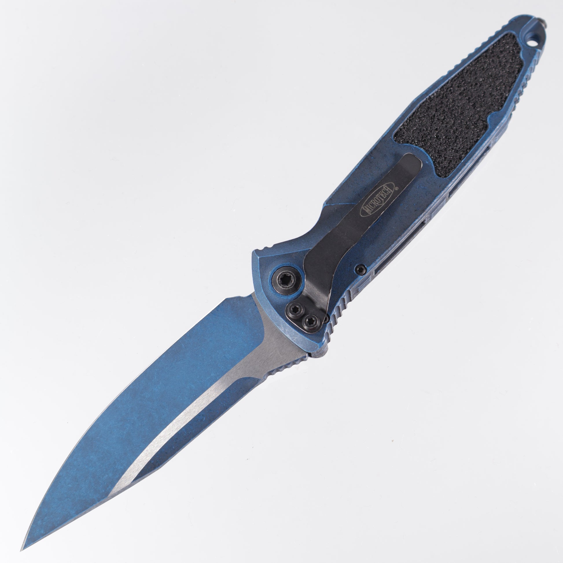 Microtech Socom Auto - Weathered Blue - Clip Point M390MK - 160A-1 WBL