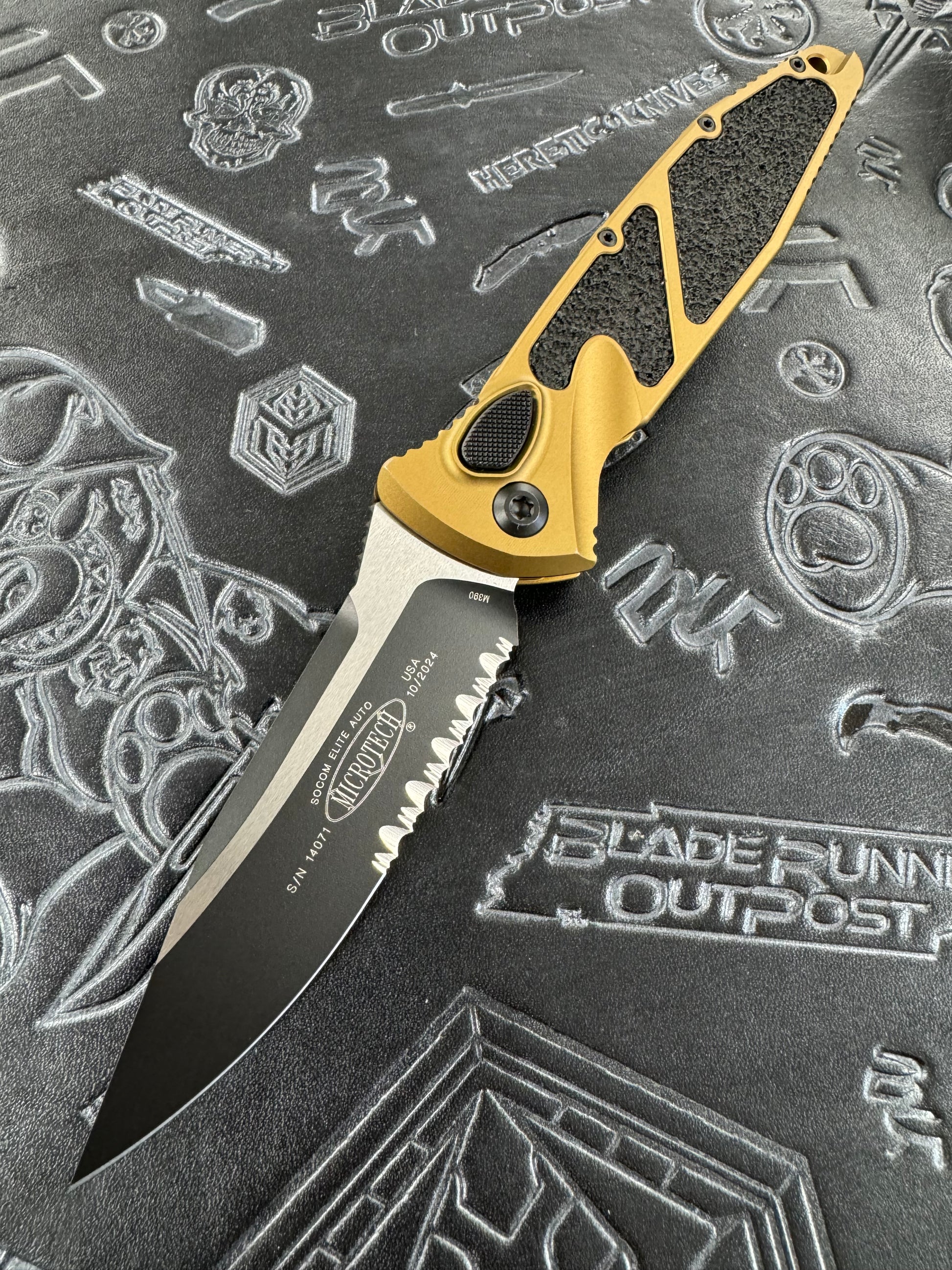 Microtech Socom Elite Auto Black S/E Tan Partial Serrated Standard 160A-2 TA