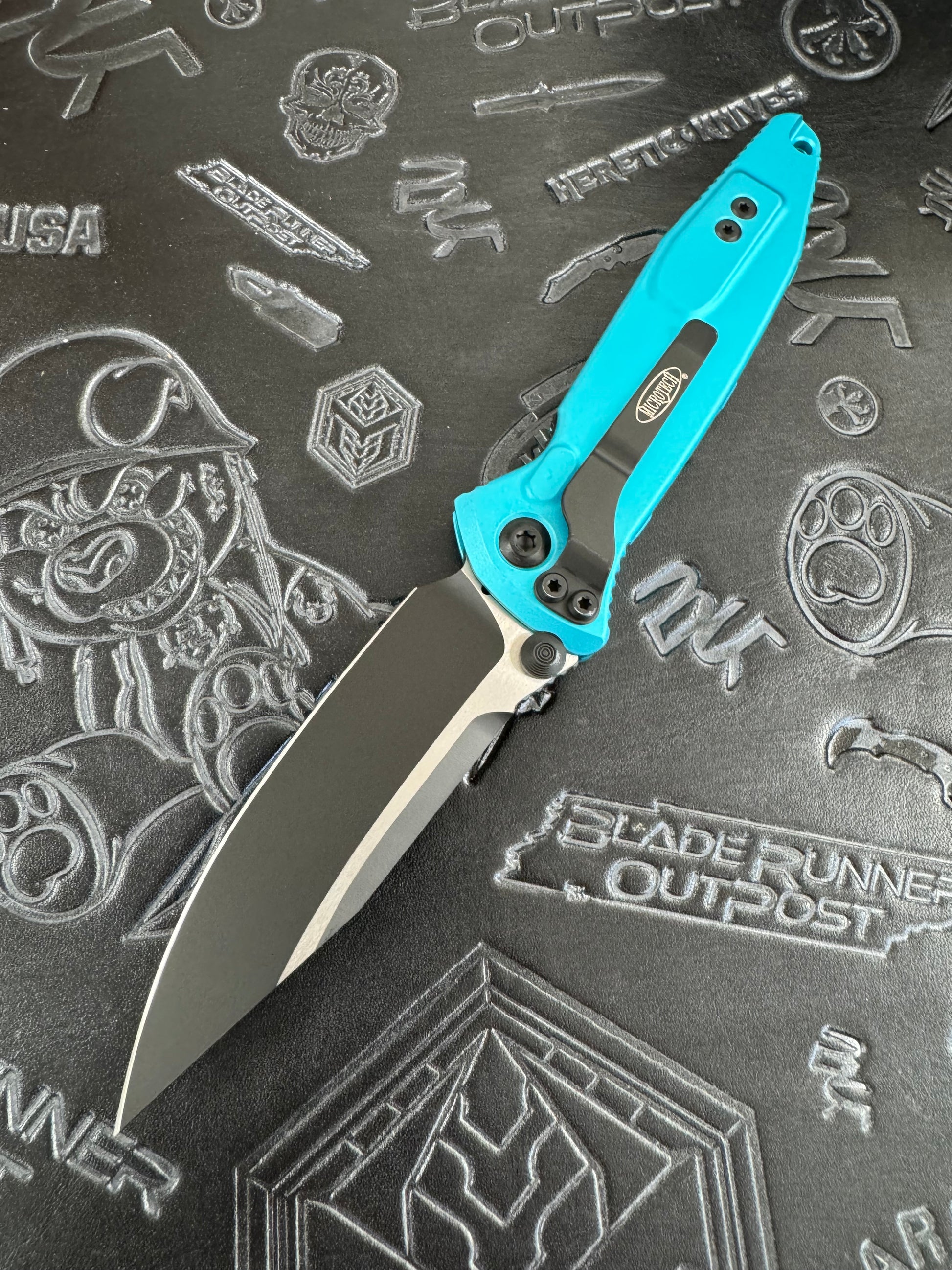 Microtech Socom Elite Manual Black Single Edge w/ Turquoise Handles 160-1 TQ