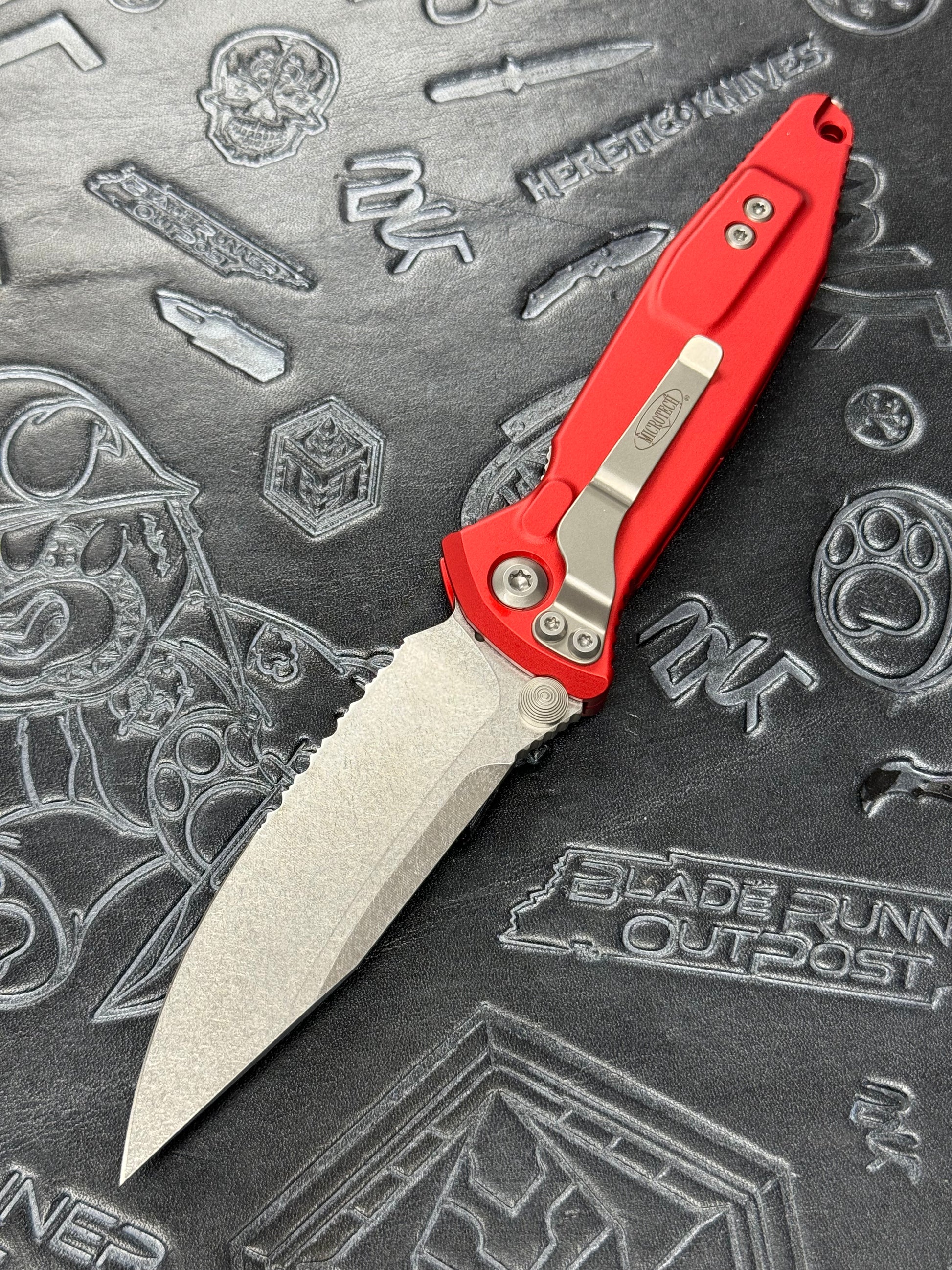 Microtech Socom Elite Manual S/E Partial Serrated Stonewash w/ Red Handle 160-11 RD
