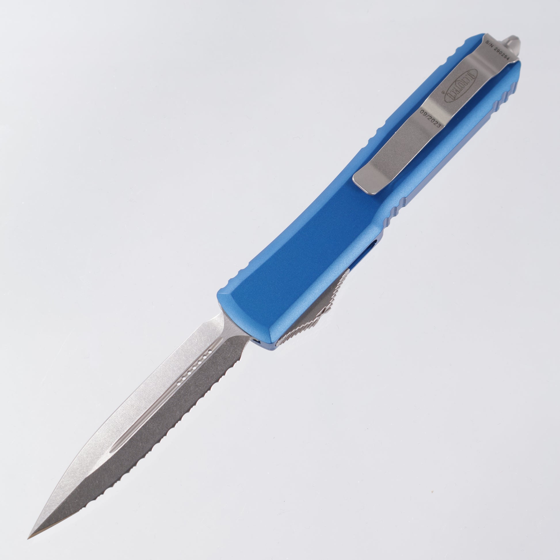 Microtech Ultratech - Double Edge Stonewash, Full Serrate M390 - Blue Aluminum - 122-12 BL