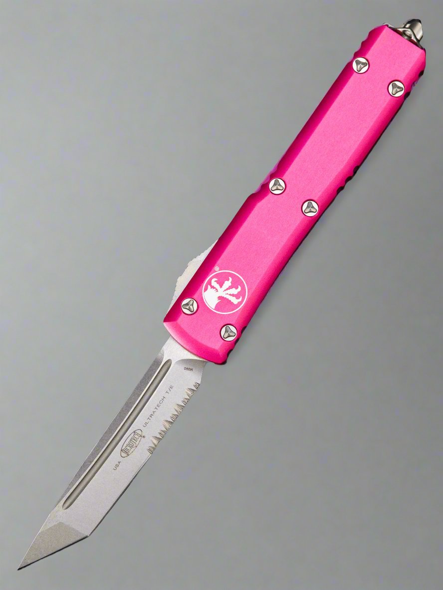 Microtech Ultratech Tanto T/E OTF Automatic Knife Pink Stonewash Serr 123-11 PK