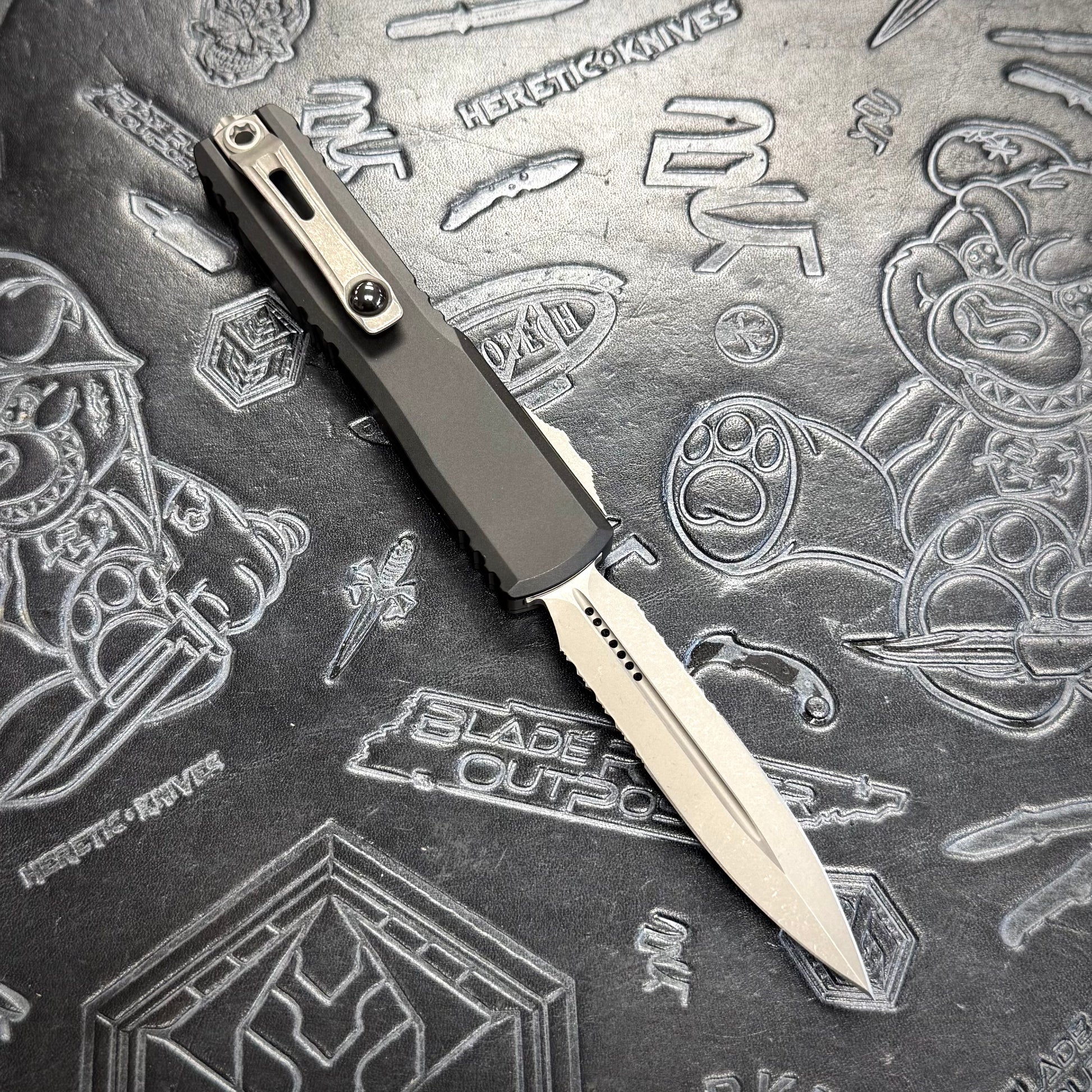 Microtech Ultratech ZBP Featuring a black chassis & an apocalyptic partial serrated double edge M390MK blade!