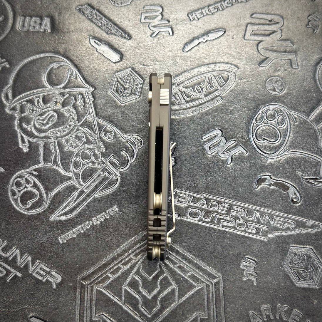 Vintage Microtech UMS w/ safety, 11/2003 build date. This piece has a few light blemishes on the clip side of the blade & a couple of very minor ones on the chassis as well but is overall in great condition.