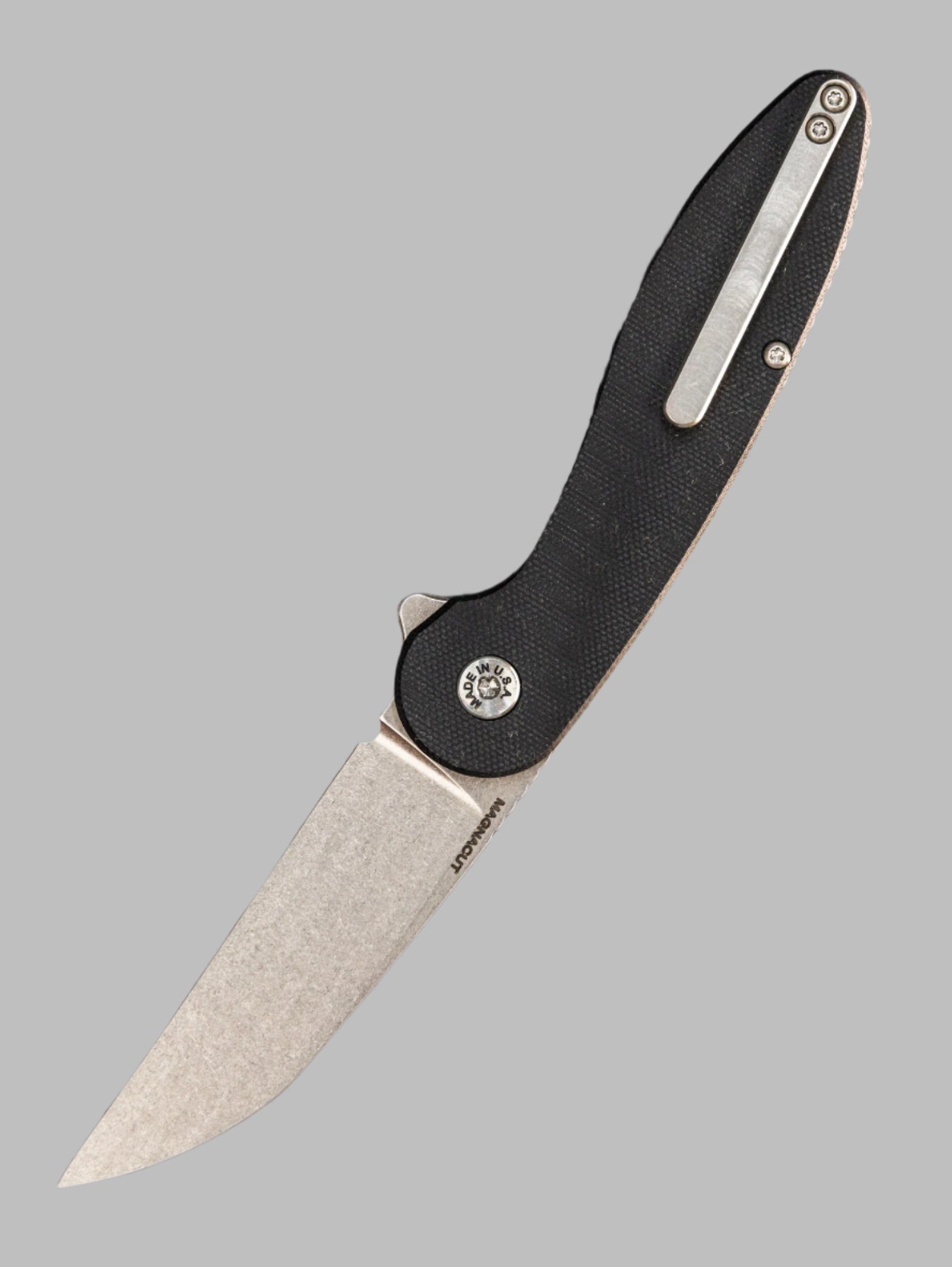 Model 1 Liner lock. The blade is made of Magnacut stainless with 3D milling and has been heat-treated and cryogenically tempered. The blade is CNC milled and has a lite stonewash finish. The blade rides on ceramic caged bearings and hardened stainless thrust washers. Ceramic detent ball. The pivot and pivot screw has been made from hardened 416 stainless. The liners are 17-4 PH stainless with a stainless backspacer. The pocket clip is made from titanium.