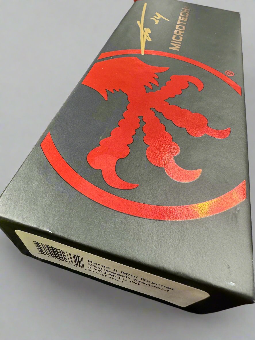 Pre Owned Like New Microtech Hera II Mini Bayonet Black Stonewash Standard Top Serrated Proof Run 1701M-10PR