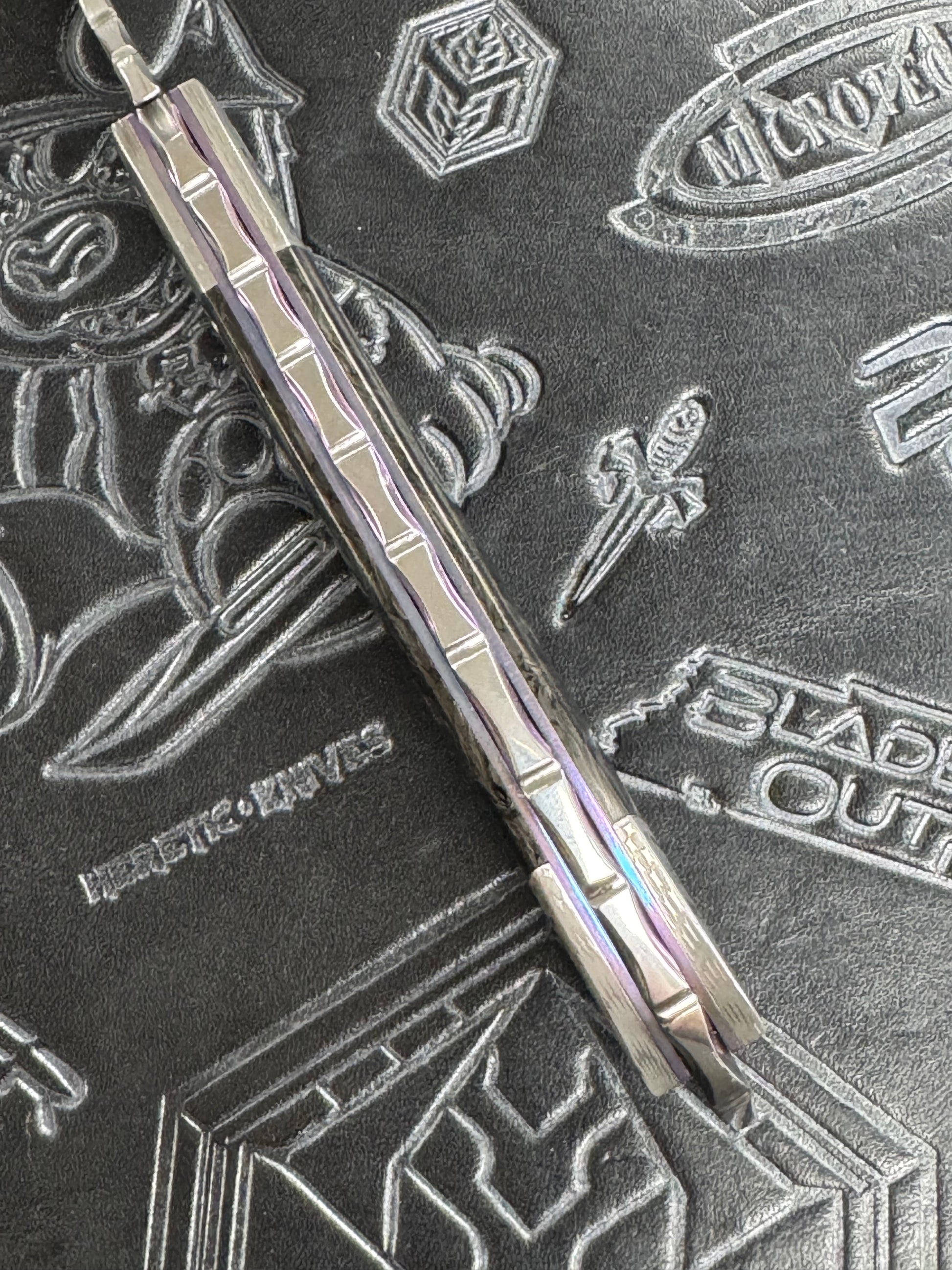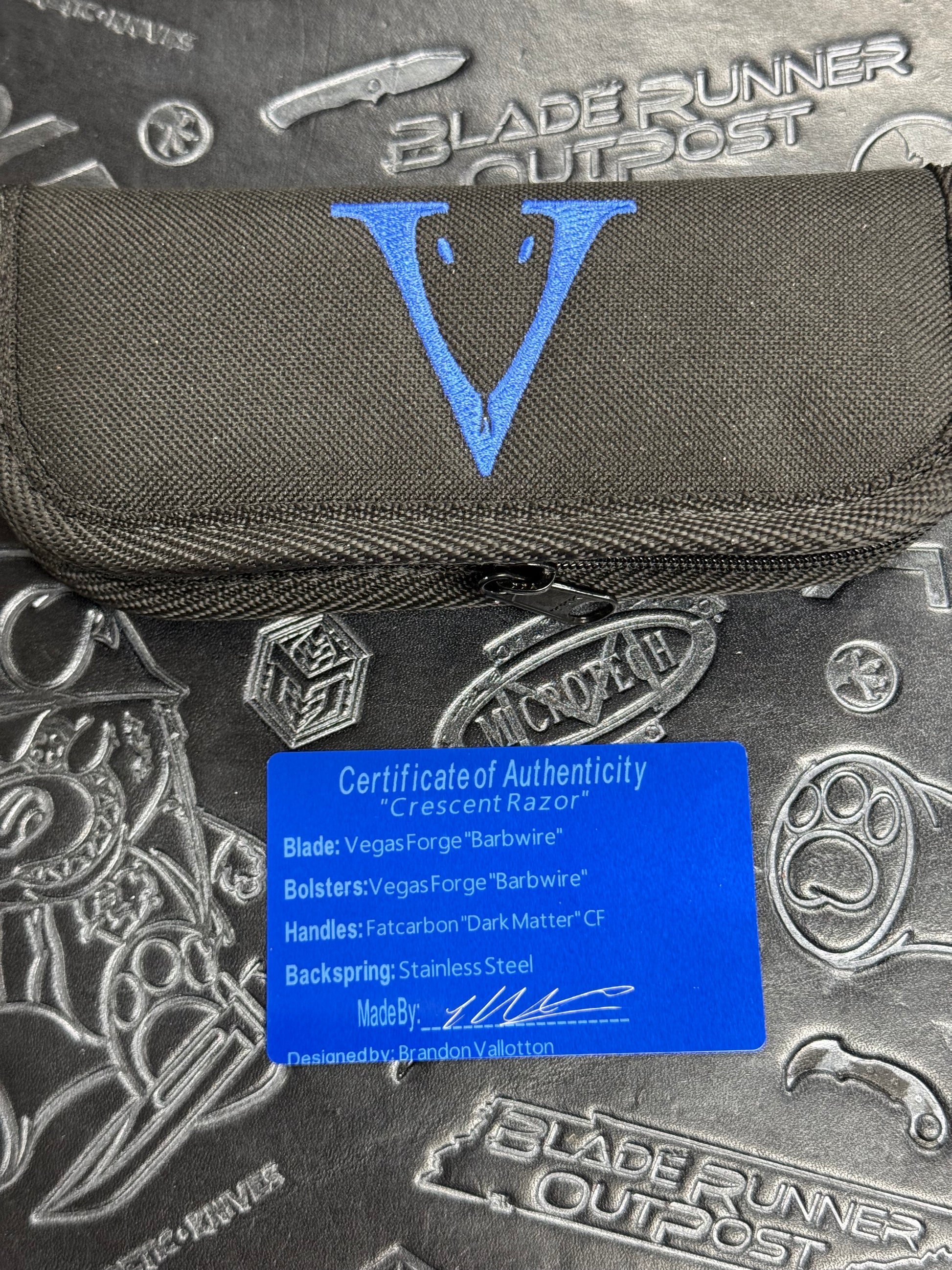 Pre Owned Valloton Crescent Razor Vegas Forge Barbwire Damascus Dark Matter CF D/A