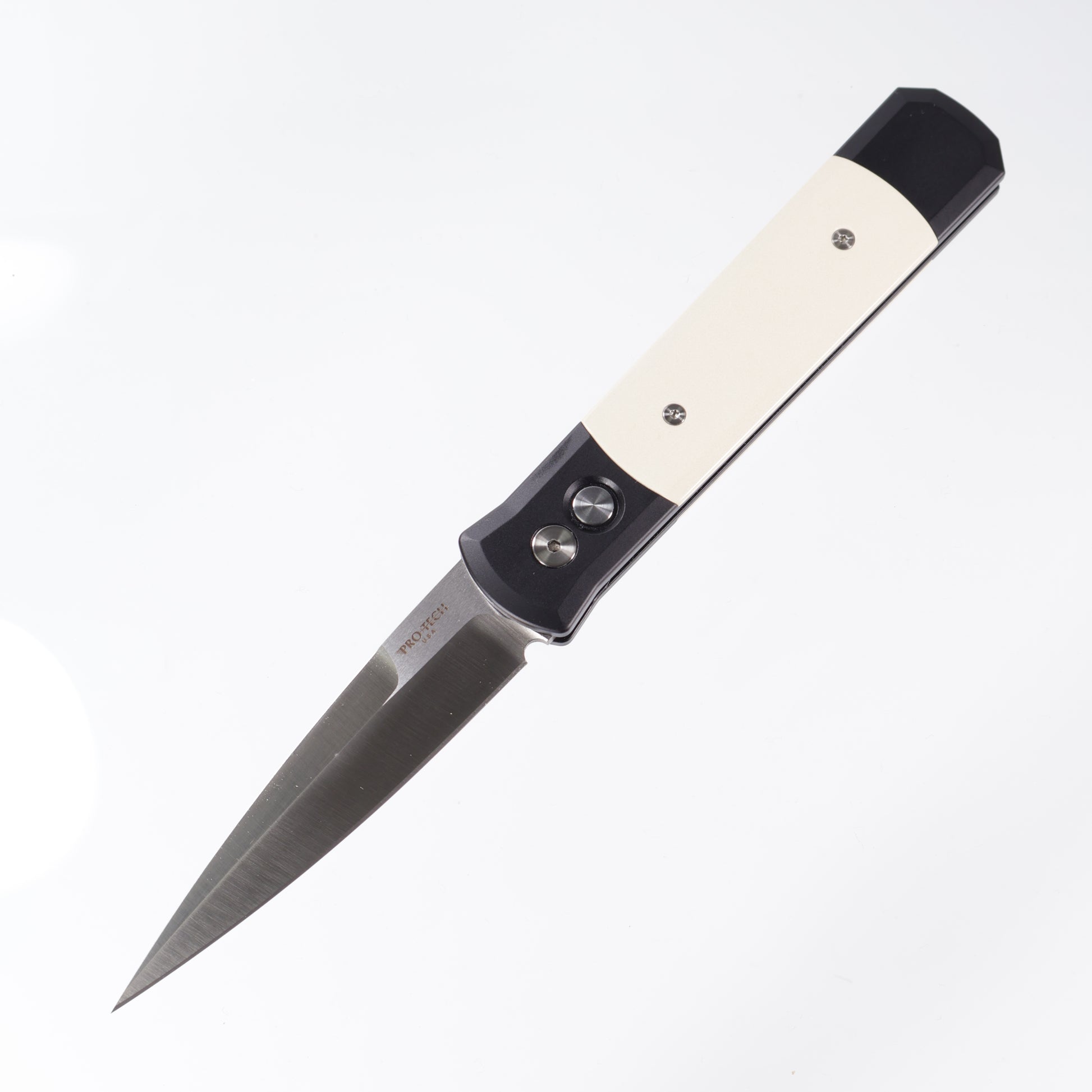 Pro-Tech Godfather Tuxedo - Black Aluminum w/ Ivory Micarta Inlays - Satin 154CM - 951