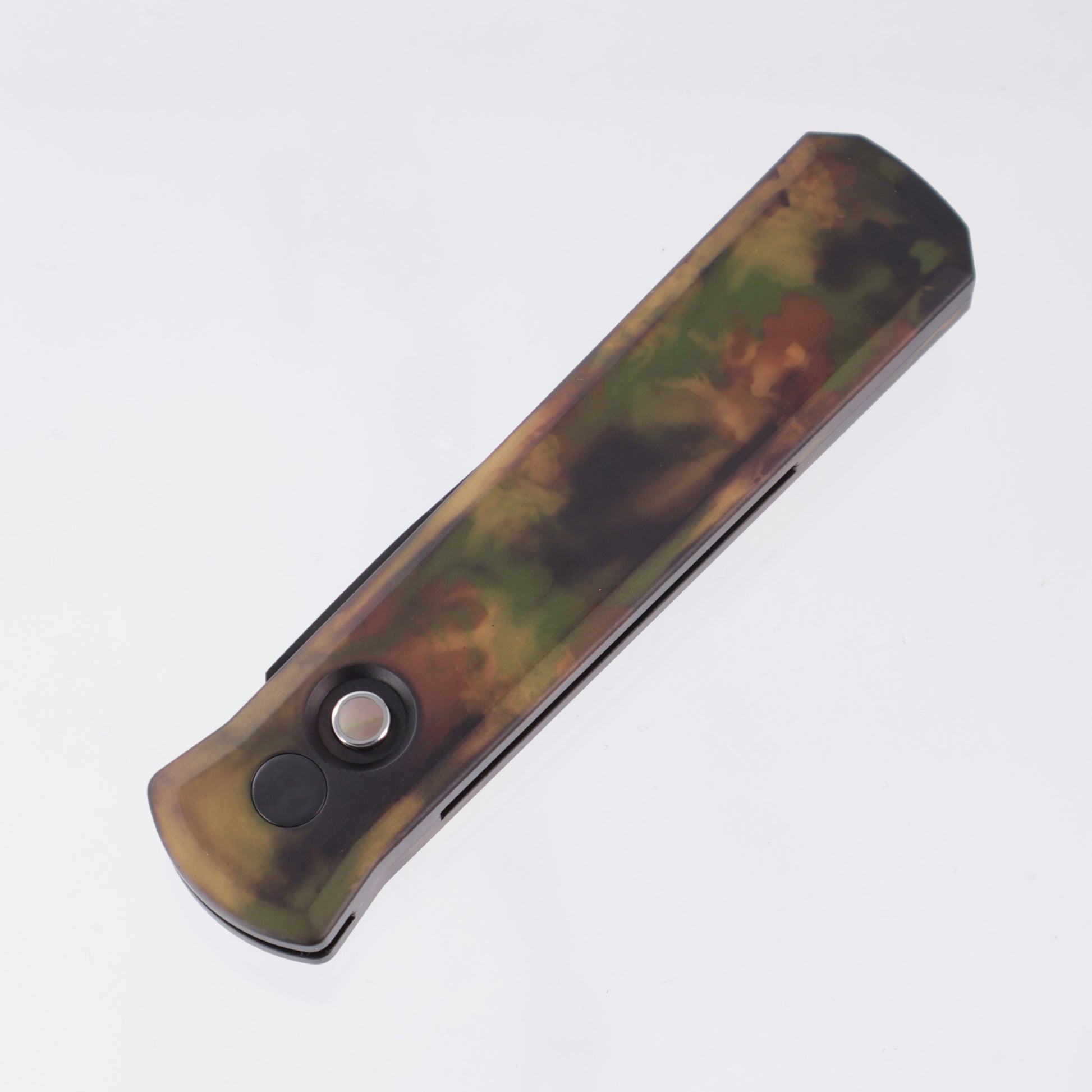 Pro-Tech Godson - *Left Handed* - Woodland Camo Anodized w/ Black Lip Pearl Button - DLC 154CM - 721-LH WOODLAND