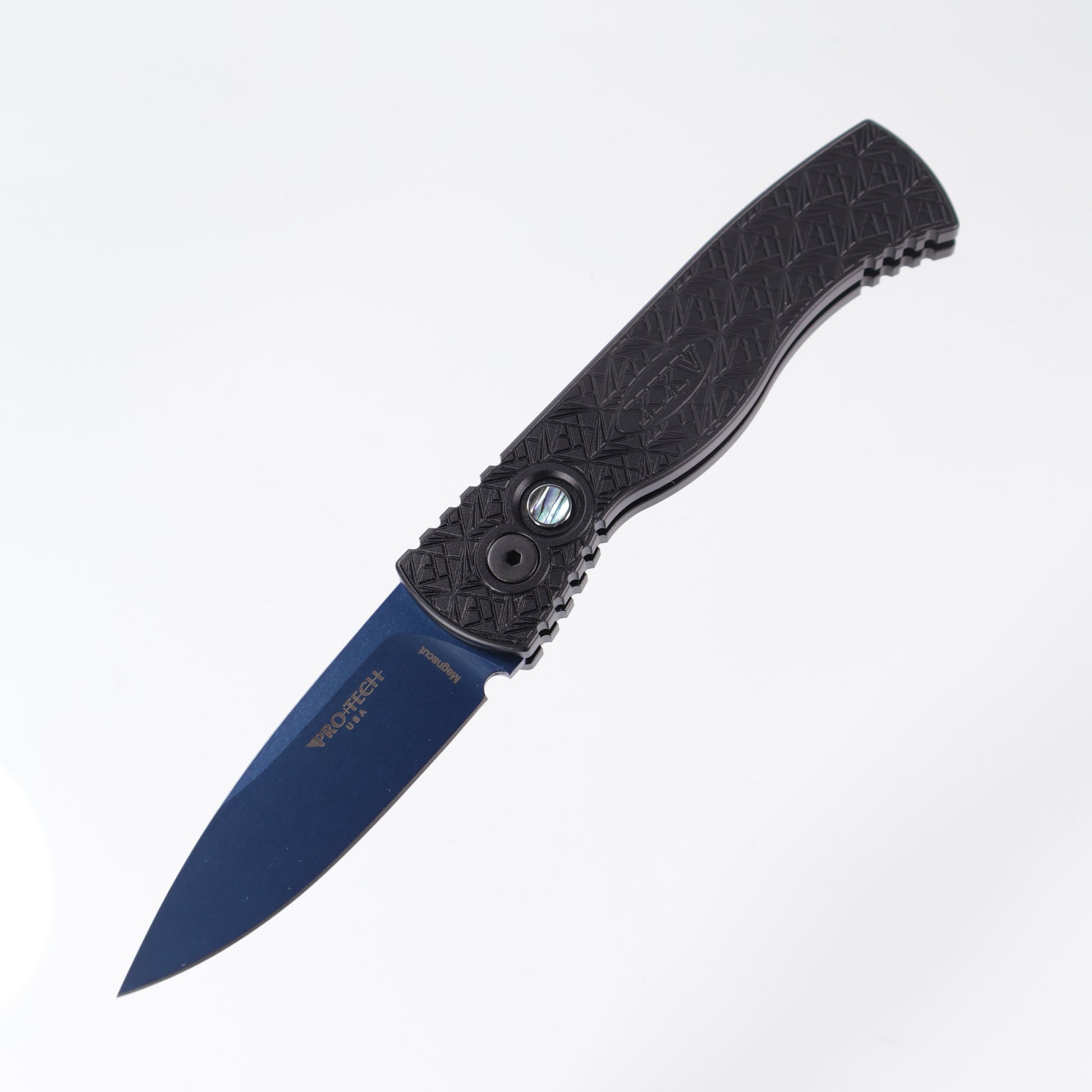 Pro-Tech TR-2 - Black Aluminum w/ Nexus “since 1999” Texture & Abalone Button - Sapphire Magnacut - T206-SB Nexus