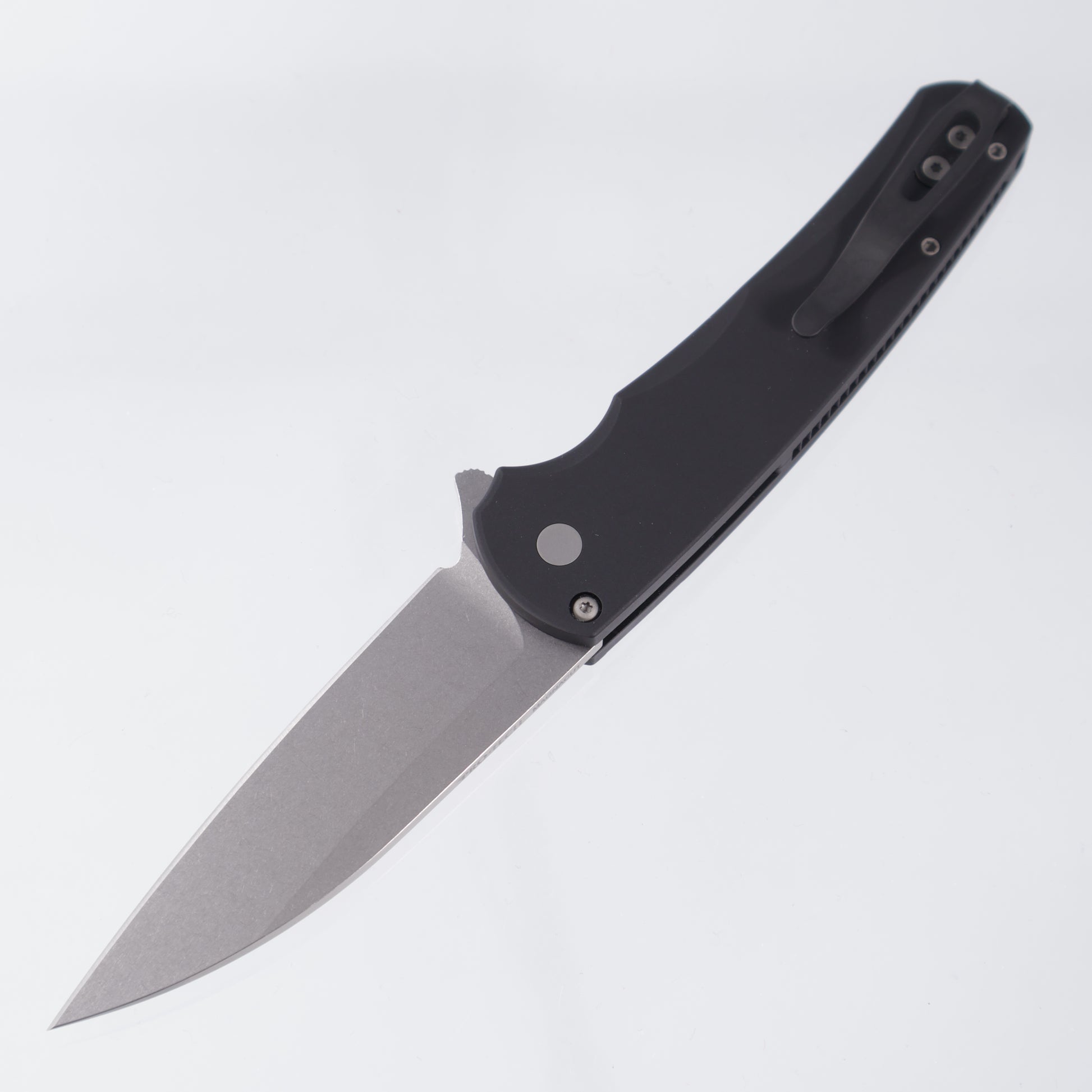 Pro-Tech Malibu - Black Aluminum - Stonewash Wharncliffe Magnacut - 5301
