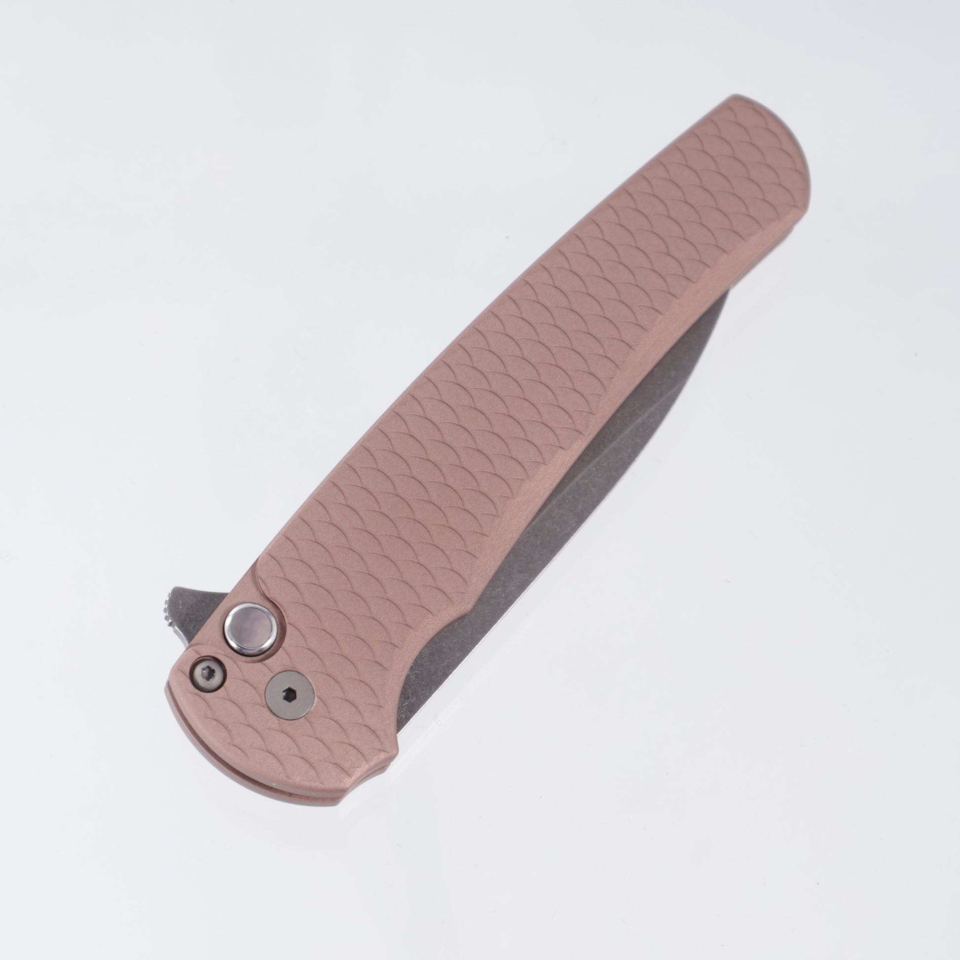 Pro-Tech Malibu - FDE Dragon Scale Aluminum w/ Black Lip Pearl Button - Acid Wash Wharncliffe Magnacut - 5336-LTD AW FDE (Tan)