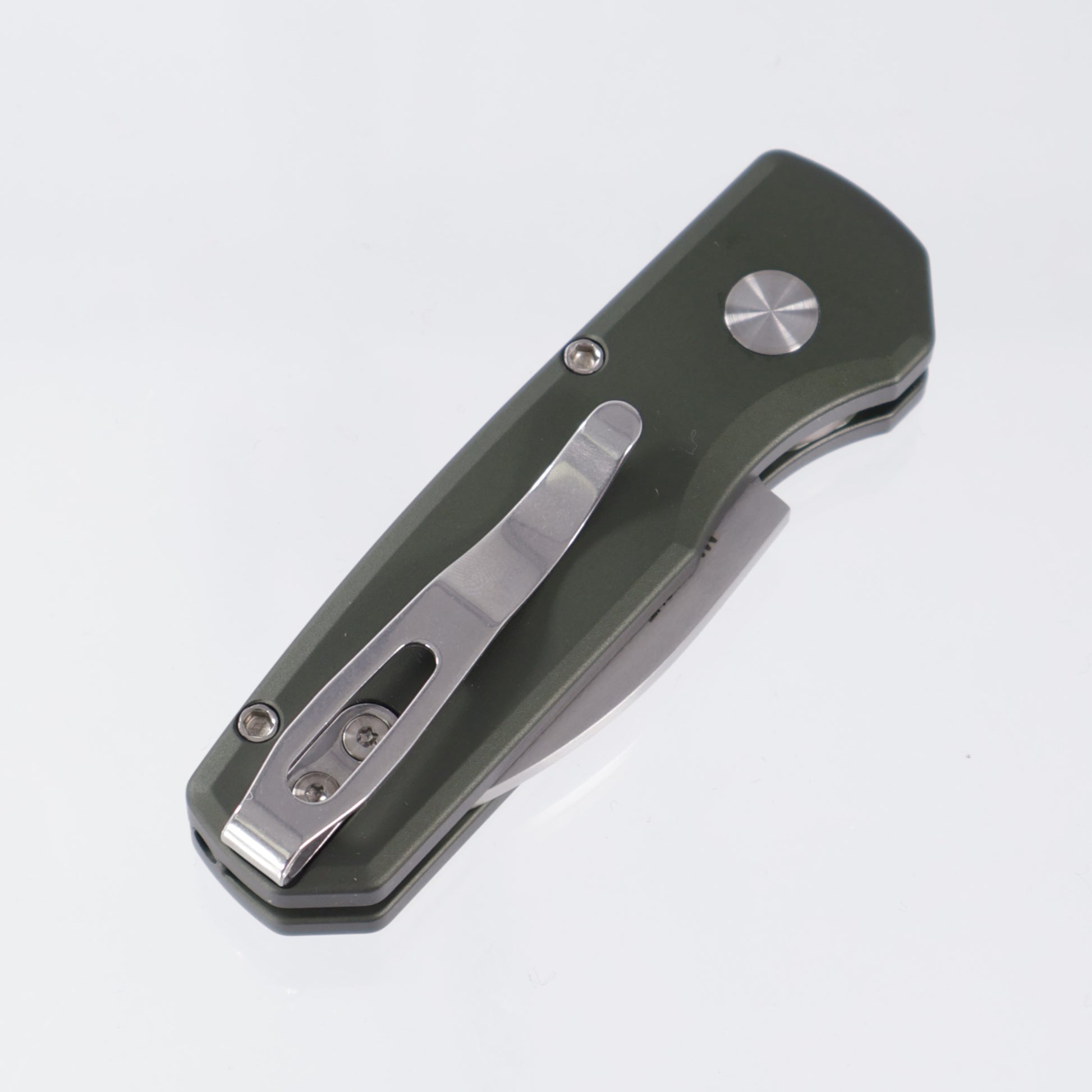 Pro-Tech Runt 5 - Green Aluminum w/ White Pearl Button - Satin Magnacut Wharncliffe - R5300-LTD Green