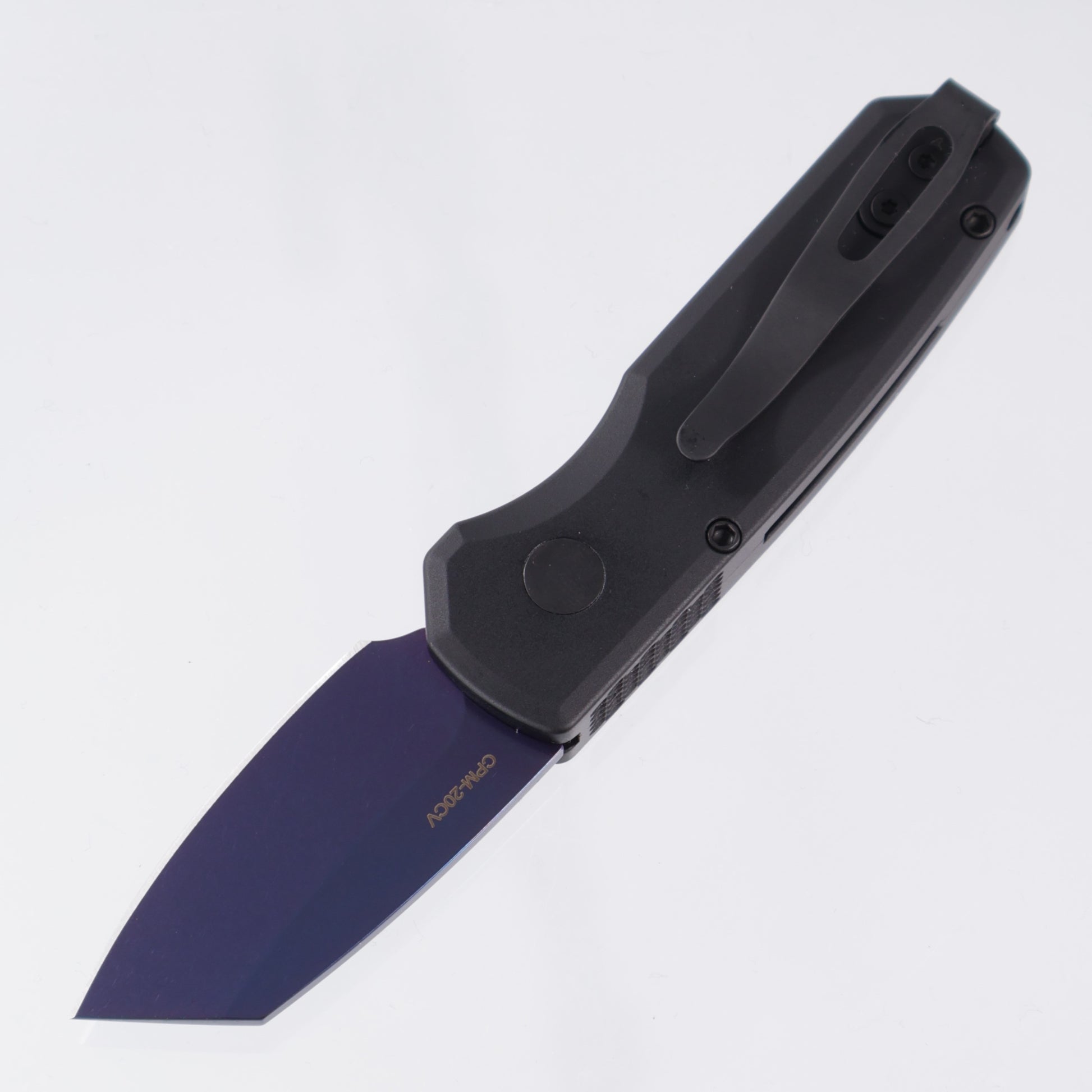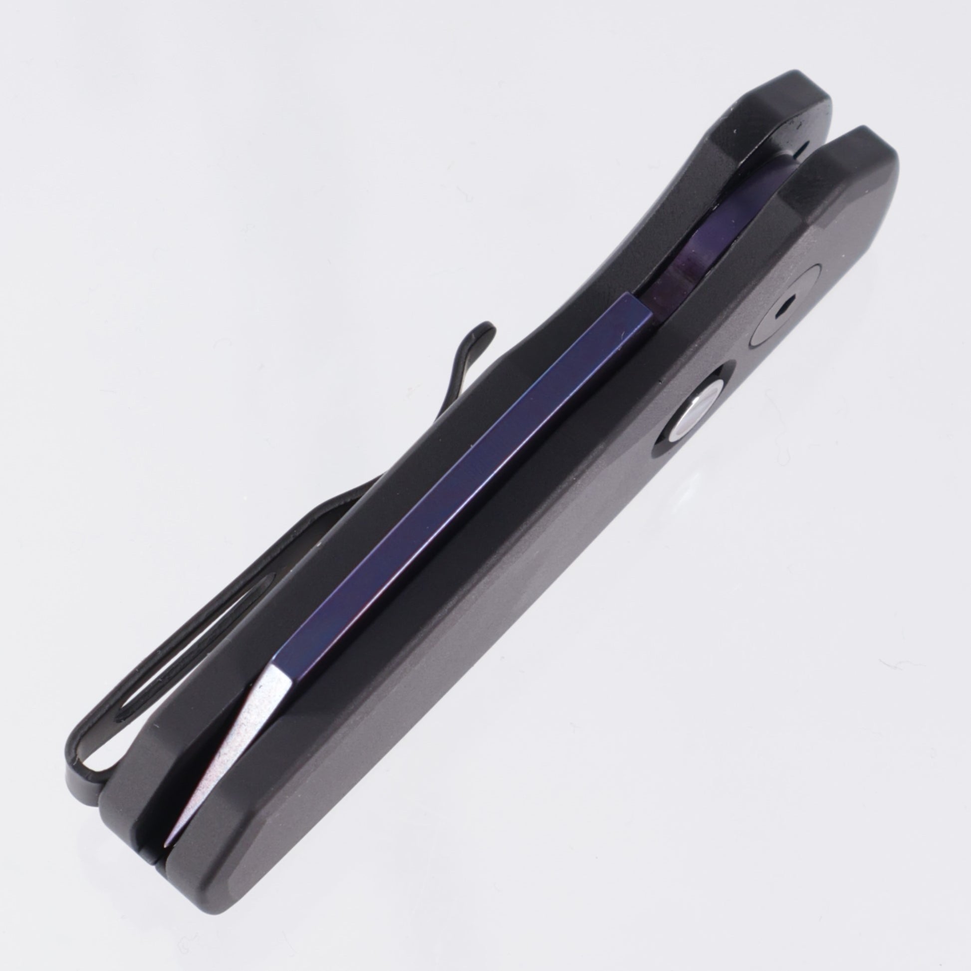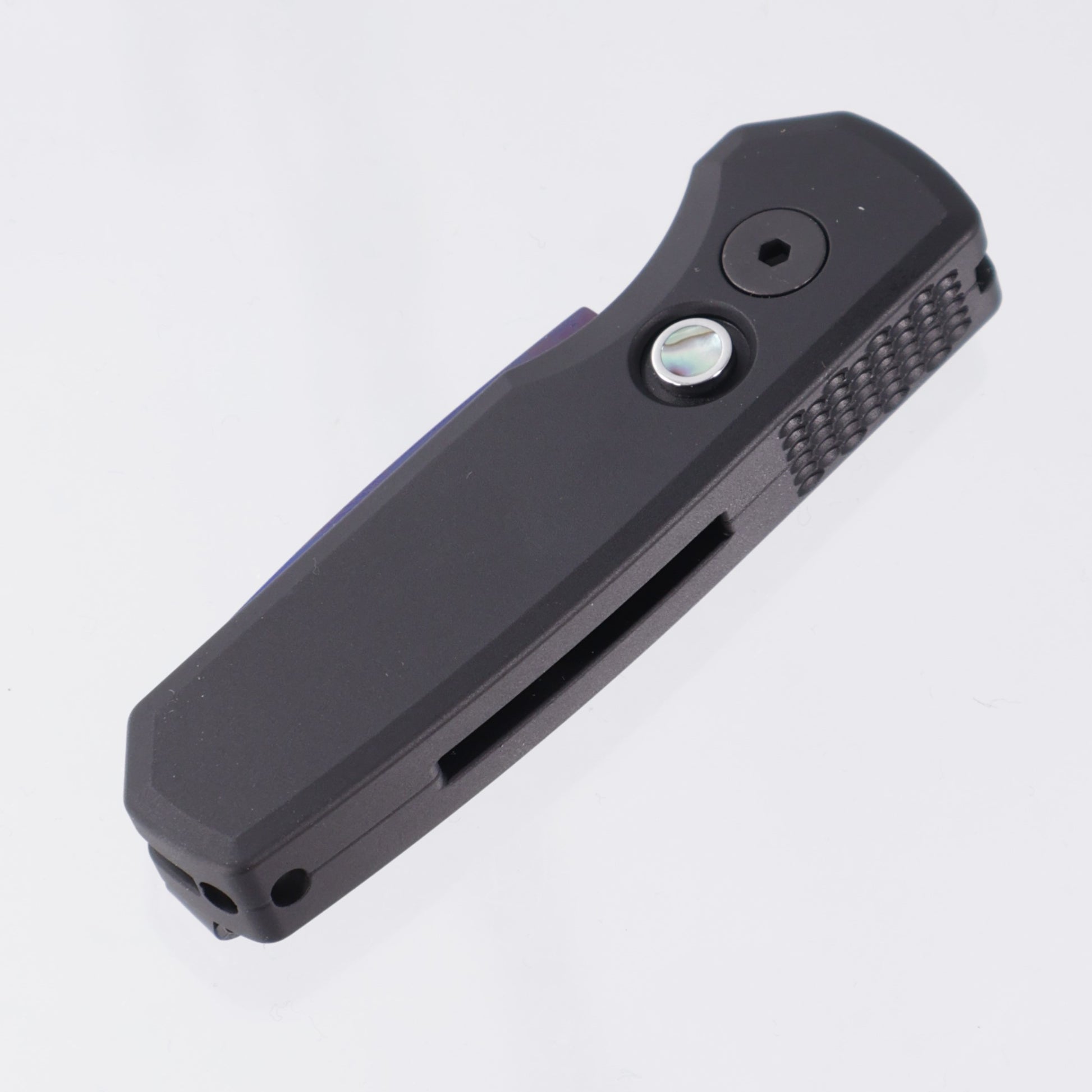 Pro-Tech Runt 5 - Black Aluminum w/ Abalone Button Inlay - Sapphire 20CV - R5203-SB