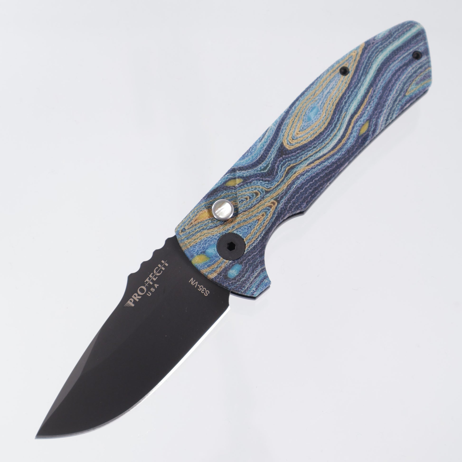 Pro-Tech SBR - G-Carta Custom "Starry Night" Top & Abalone Button - DLC S35VN - LG423-Starry Night