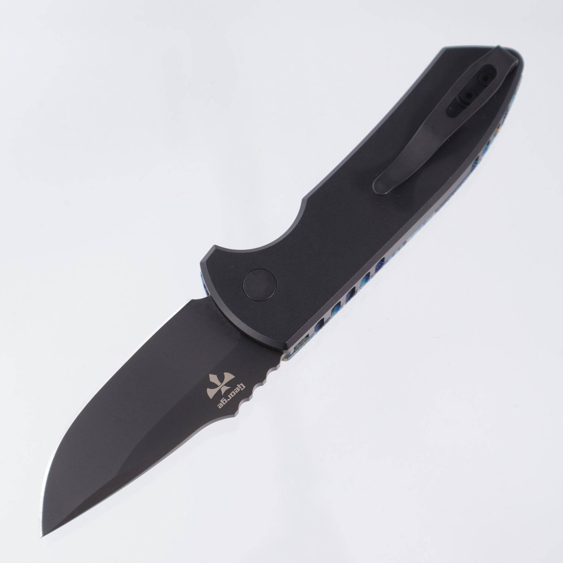 The Short Bladed Rockeye, or SBR for short, is a compact version of our outstanding full sized Rockeye Auto. Both knives are designed by Marine Corps knife designer Les George, who’s ergonomic hard use knives have been faithfully translated to automatic versions by Pro-Tech. The SBR features a compact design, with a 2.5″ blade that’s built for a multitude of cutting tasks. A pocket milled spine adds extra grip and depth to the design. The knife snaps open with authority thanks to our Pro-Tech coil spring automatic mechanism. Don’t let its size fool you, the SBR is a bantam powerhouse.