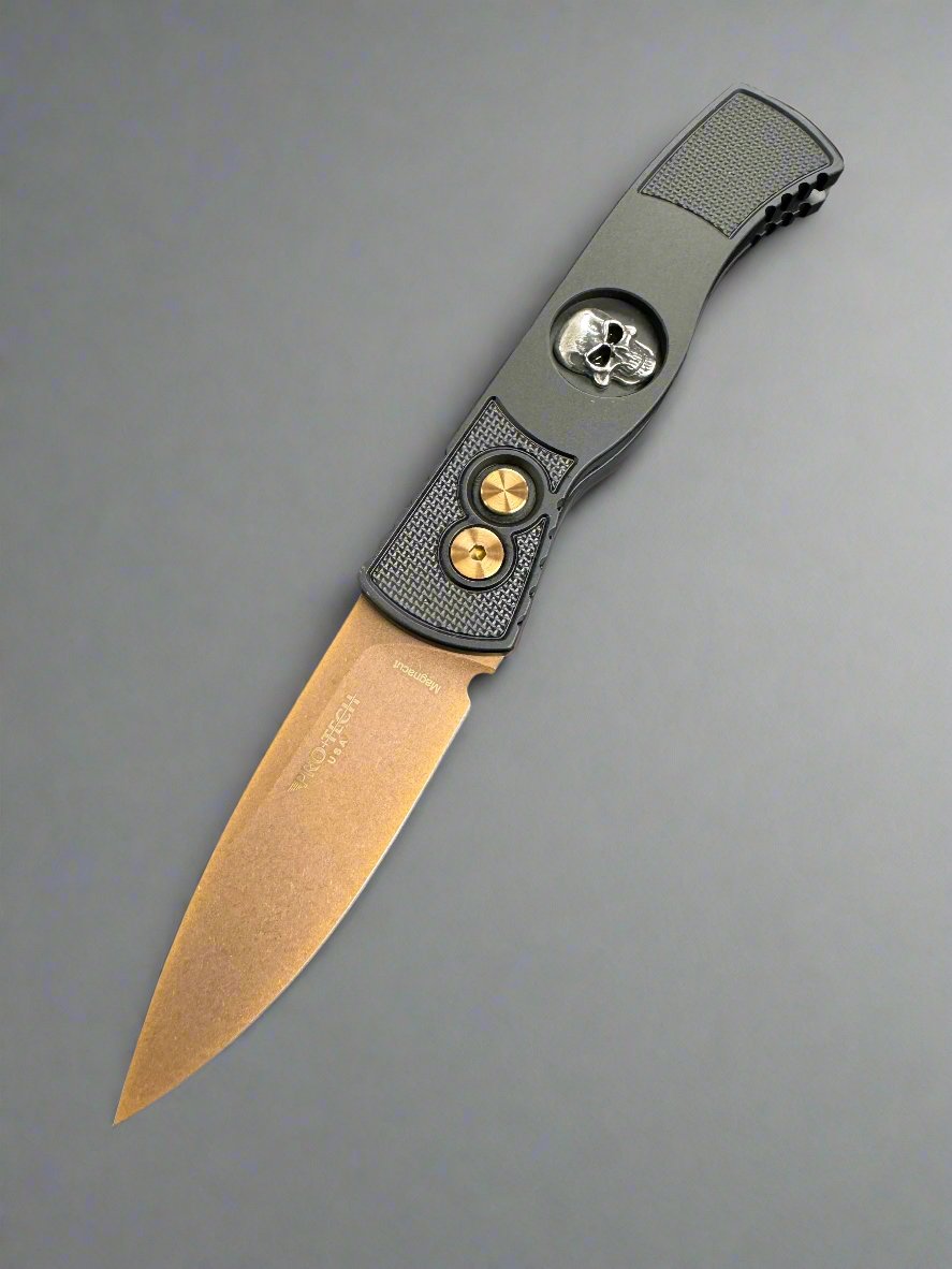 Pro-Tech TR-2 Tactical Response 2 Black w/ Textured Corners & Silver Shaw Skull w/ Rose Gold MagnaCut TR-2 RG Skull