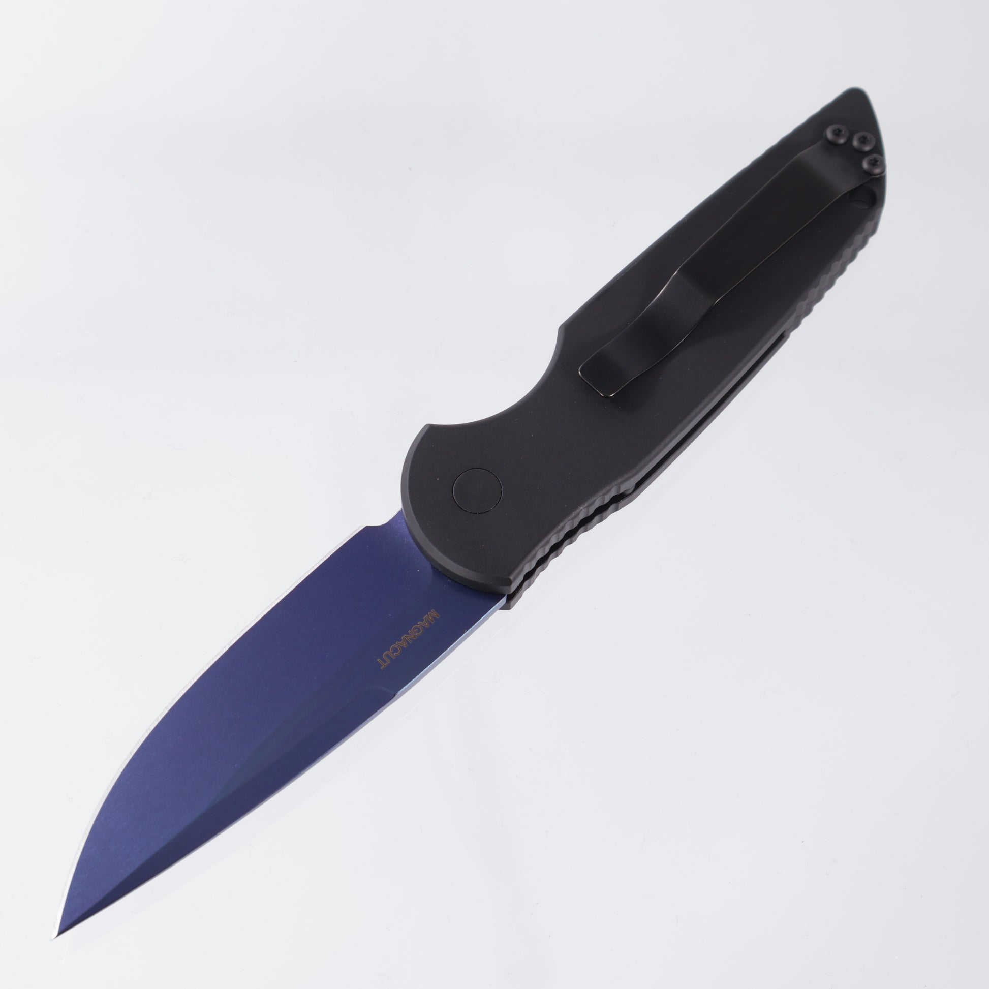 Pro-Tech TR-3 Auto - Saphire Blue Magnacut - Black Aluminum w/ Grooves & Abalone Button - TR-3 SB MC (TR3))