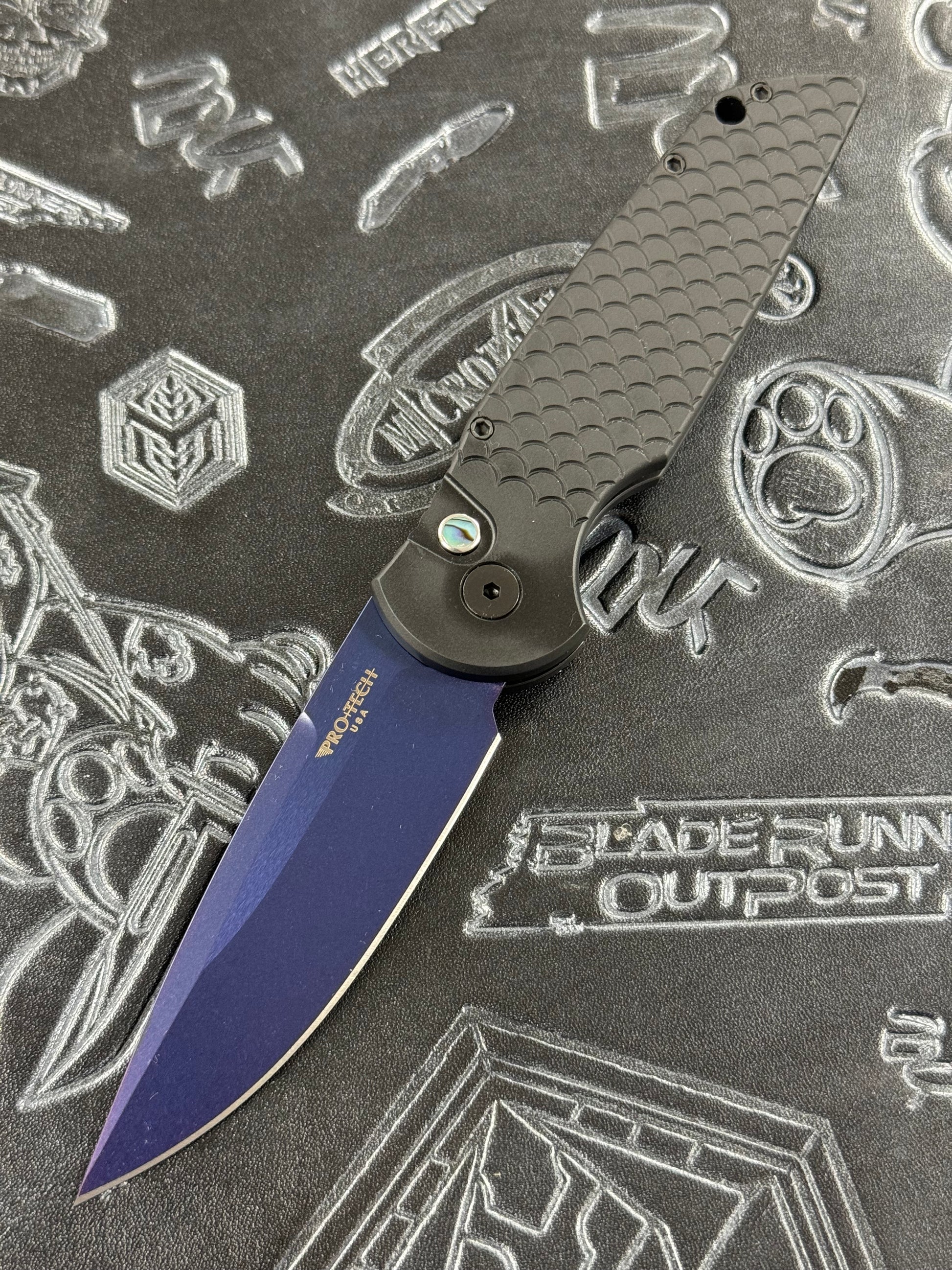 Pro-Tech TR-3 Automatic Knife Fish Scale Black Aluminum (3.5" Sapphire)