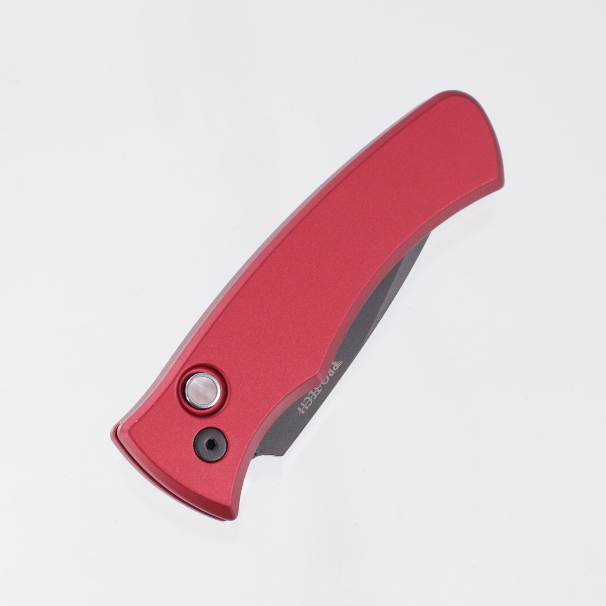 Pro-Tech Duke 2 - Red Aluminum w/ Black Lip Pearl Button - DLC Magnacut - CCKSF25.Duke.1