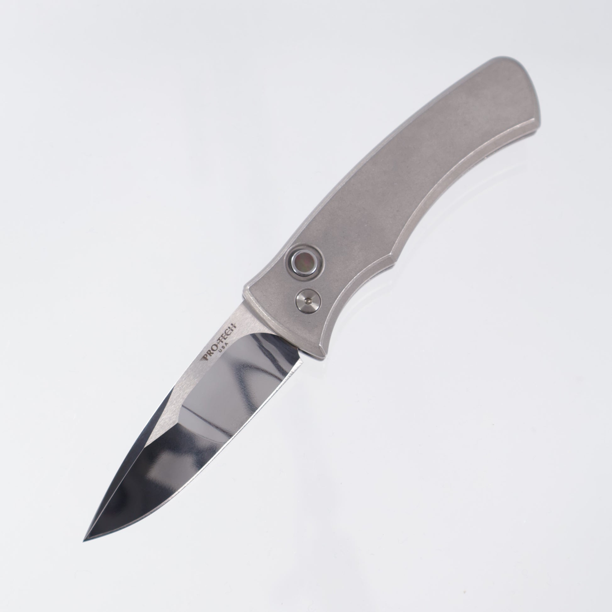 Protech Knives Duke 2 auto featuring tumbled 17-4 Stainless handles & a Mike Irie Compound ground mirror polish blade! This freshly resurrected automatic is a great US made package!