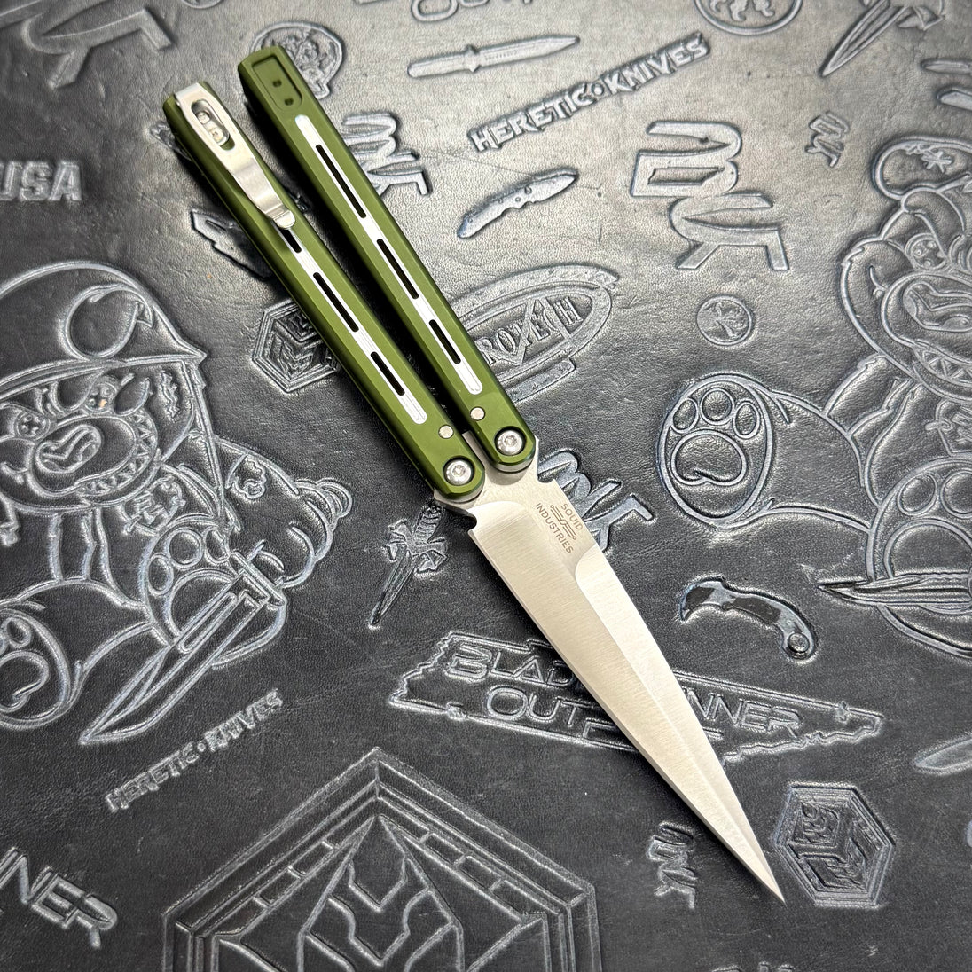 Protech FlyFather 2 featuring blacked out channel handles, zen pin and internal bushing construction from Squid Industries & a satin 154CM blade!