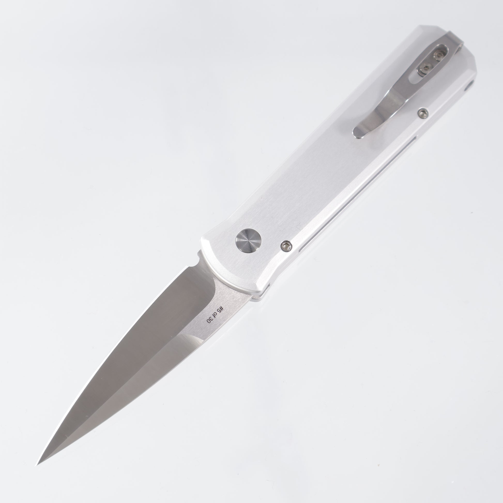 Pro-Tech Godson CCKSF25.Godson.2 - Satin Silver Handle w/ Livewire Copper Carbon Inlay & Mosaic Pin button - Satin 20CV