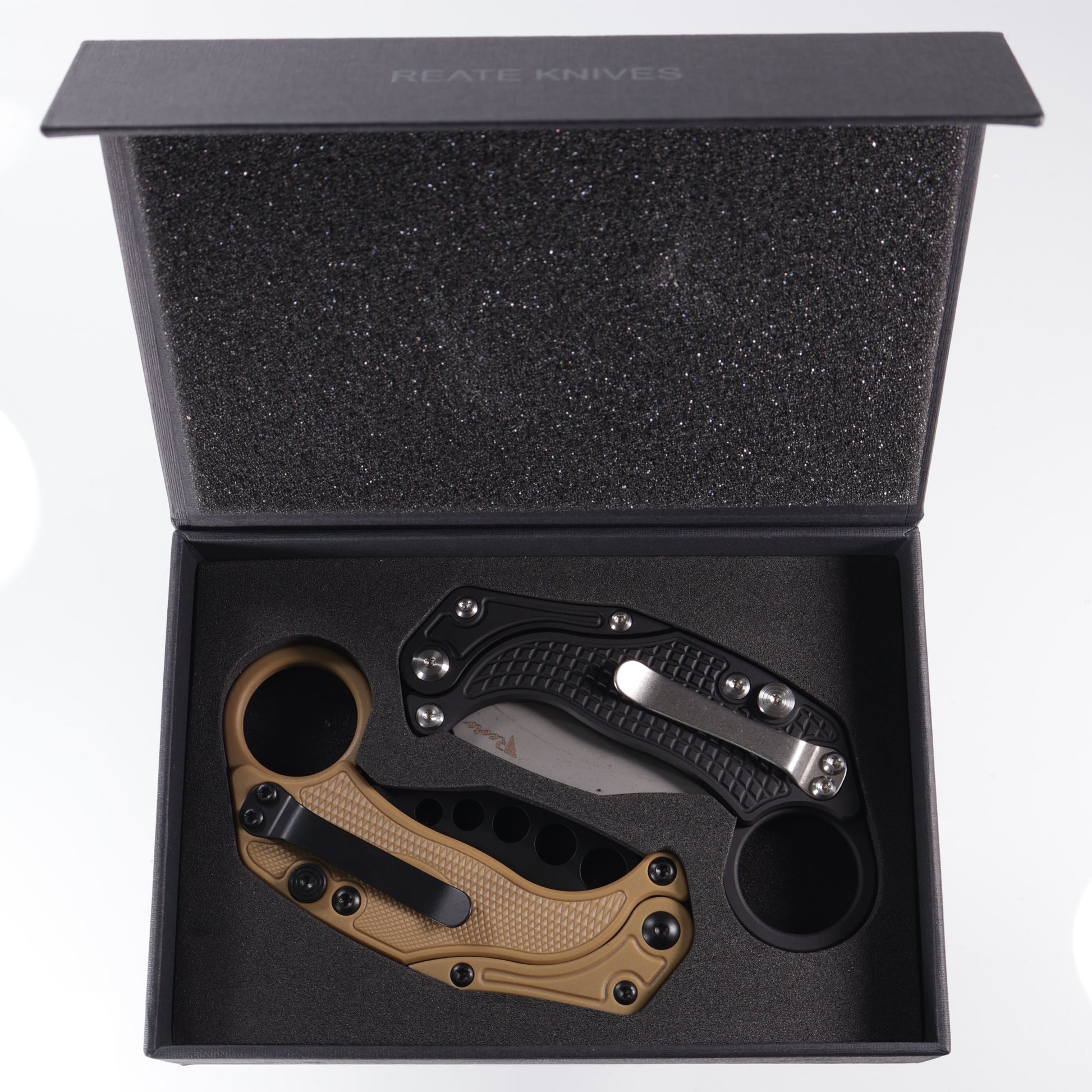- Hawkbill-style Karambit blade made from stonewash Bohler N690 steel.
