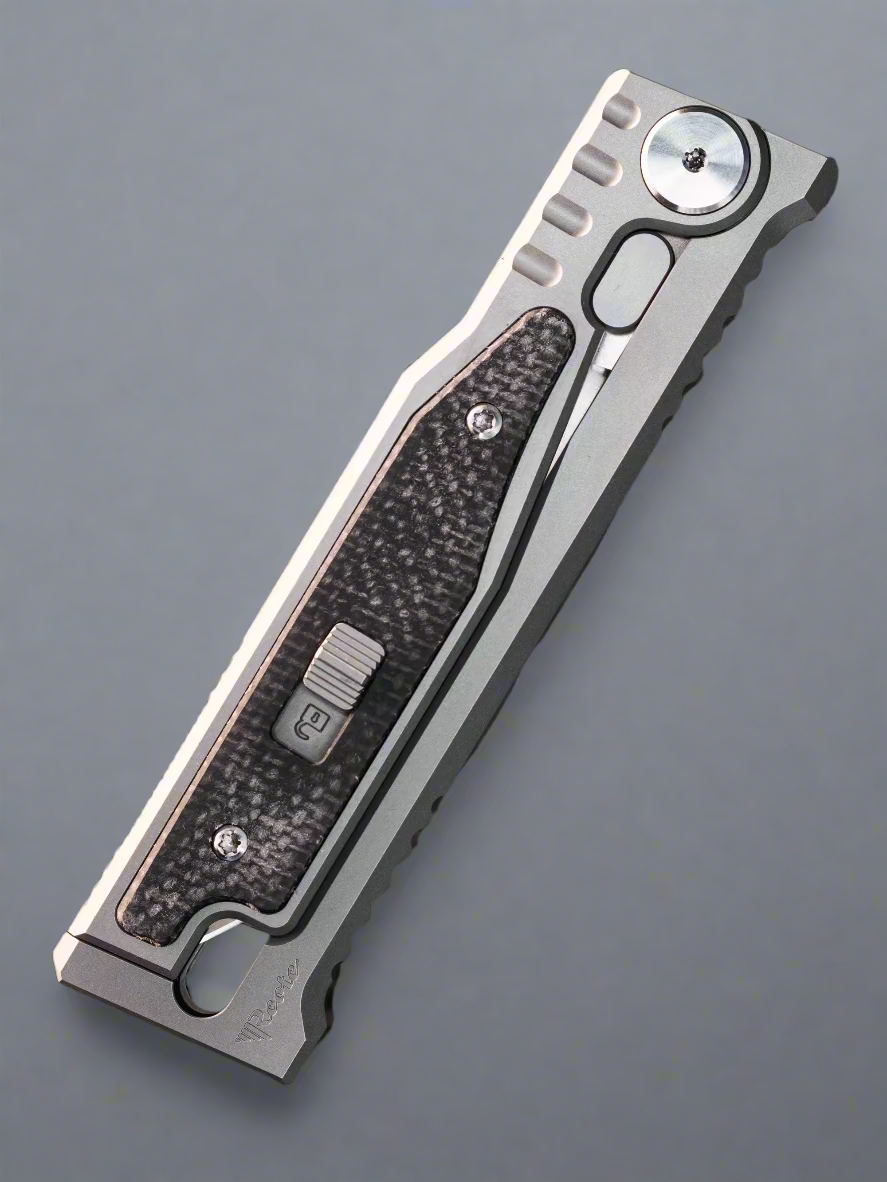 Reate EXO-M Drop Point Gravity Knife Titanium/Black Micarta (2.95" Satin)