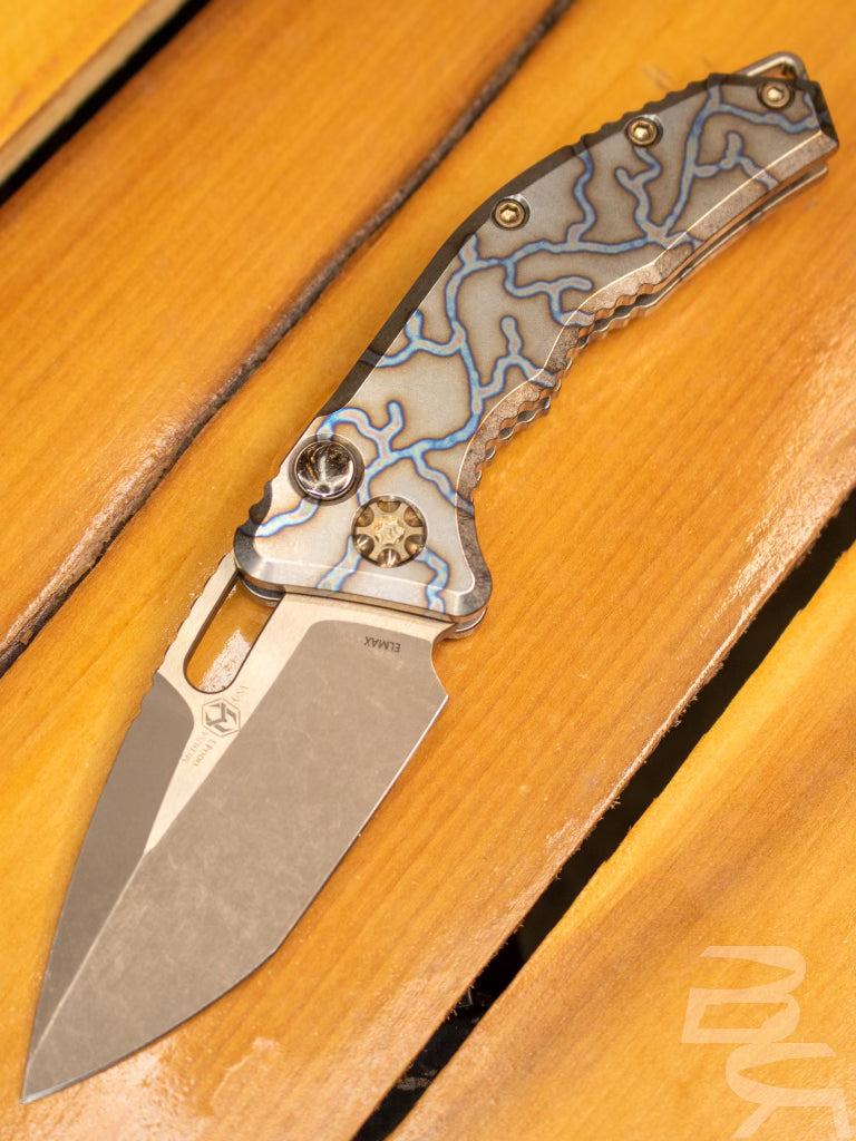 Heretic Knives Medusa Automatic (H011-7A-Ti) - 3" Elmax Tanto Battleworn Bronze Blade, Flamed Titanium Handle