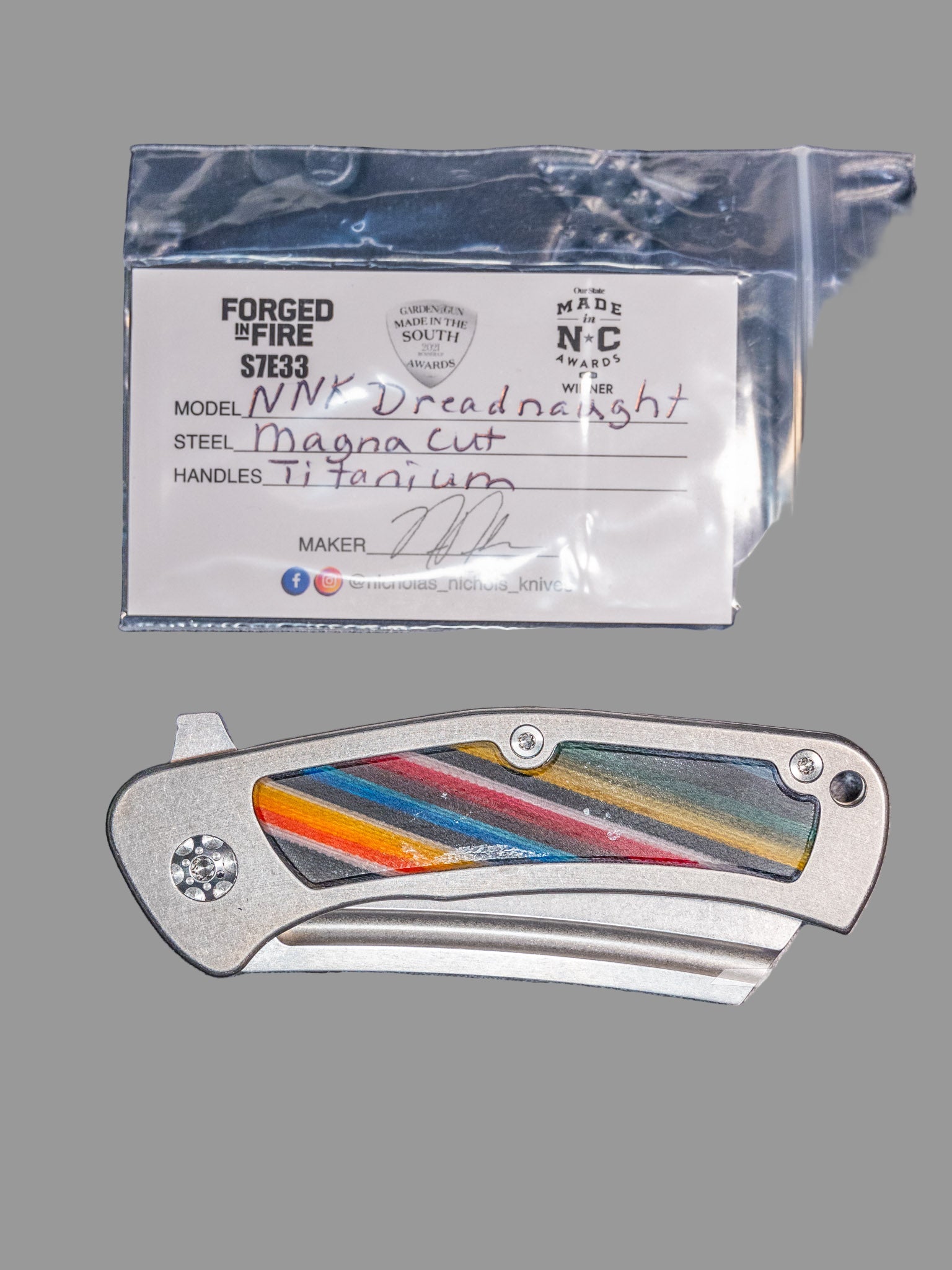 Nichols Knives Dreadnought Inlay Titanium Magnacut Framelock 3.25” Titanium Clip