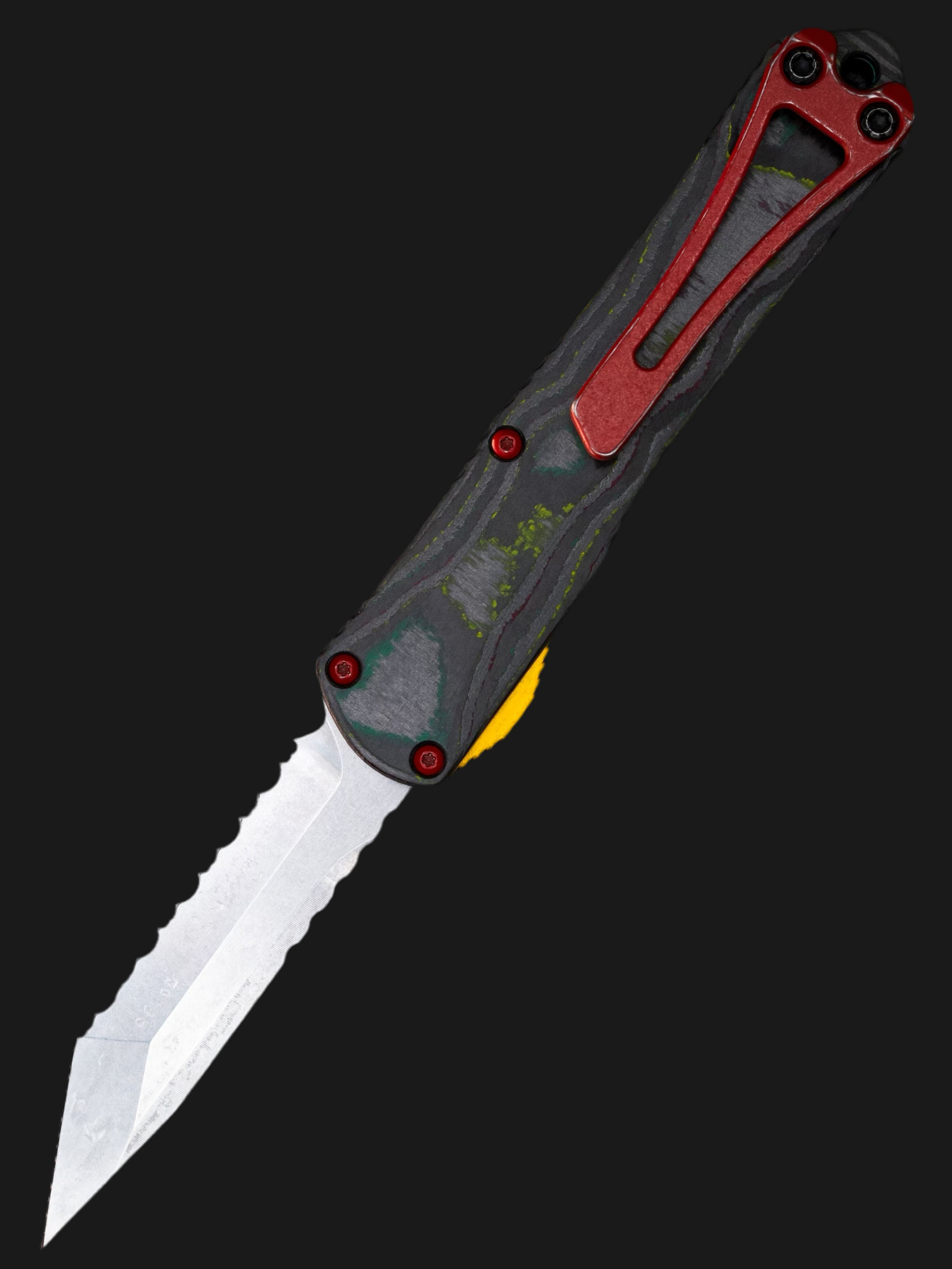 The Heretic Knives Manticore-S is the little brother to the Manticore-X line. It features a contoured aluminum chassis with jimping all along the sides. This lightweight and capable OTF knife opens and closes smoothly, making for an excellent everyday carry. Comes with a ball-bearing glass breaker and a deep carry pocket clip. This knife is 100% USA made and assembled.