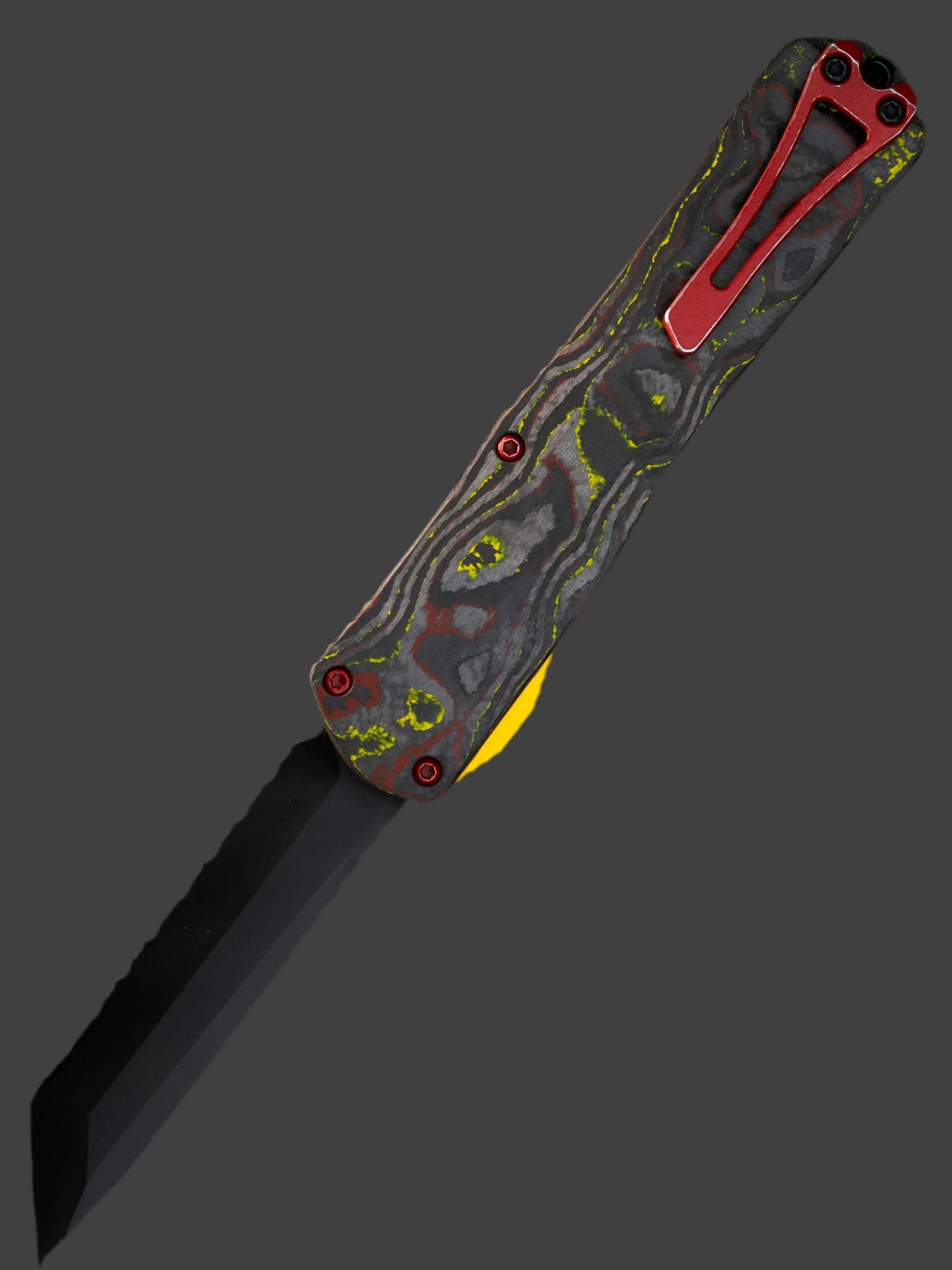 The Manticore X the largest of the Manticore Series. This knife is 100% USA made and assembled. Backed by our lifetime warranty you can rest assured that this OTF will last. Silky smooth one handed deployment and retract are standard operations of our Manticore. The X features a integrated lanyard hole ,hardened steel glass breaker and deep carry clip. The button rides on ball bearing balls for a silky smooth deployment and retraction feel.