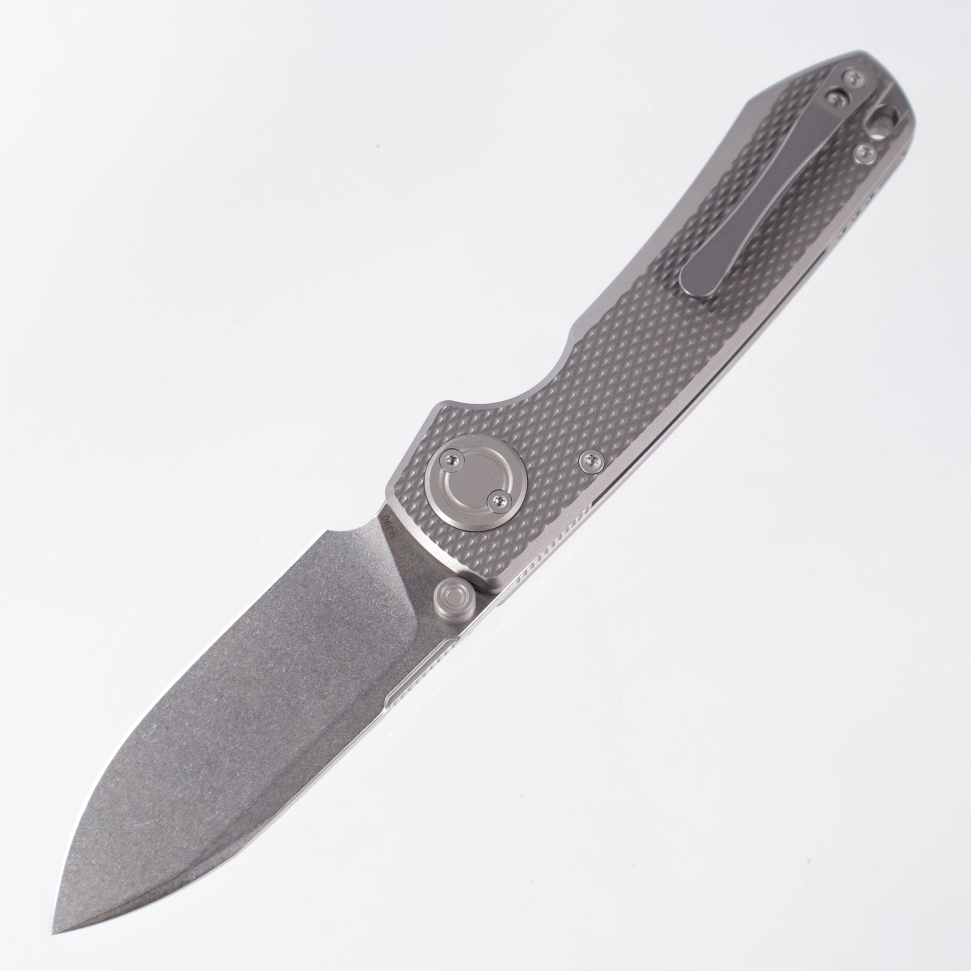 Vosteed Raccoon V - Dim Gray Titanium w/ Blue Button - Stonewash M390 - A4001