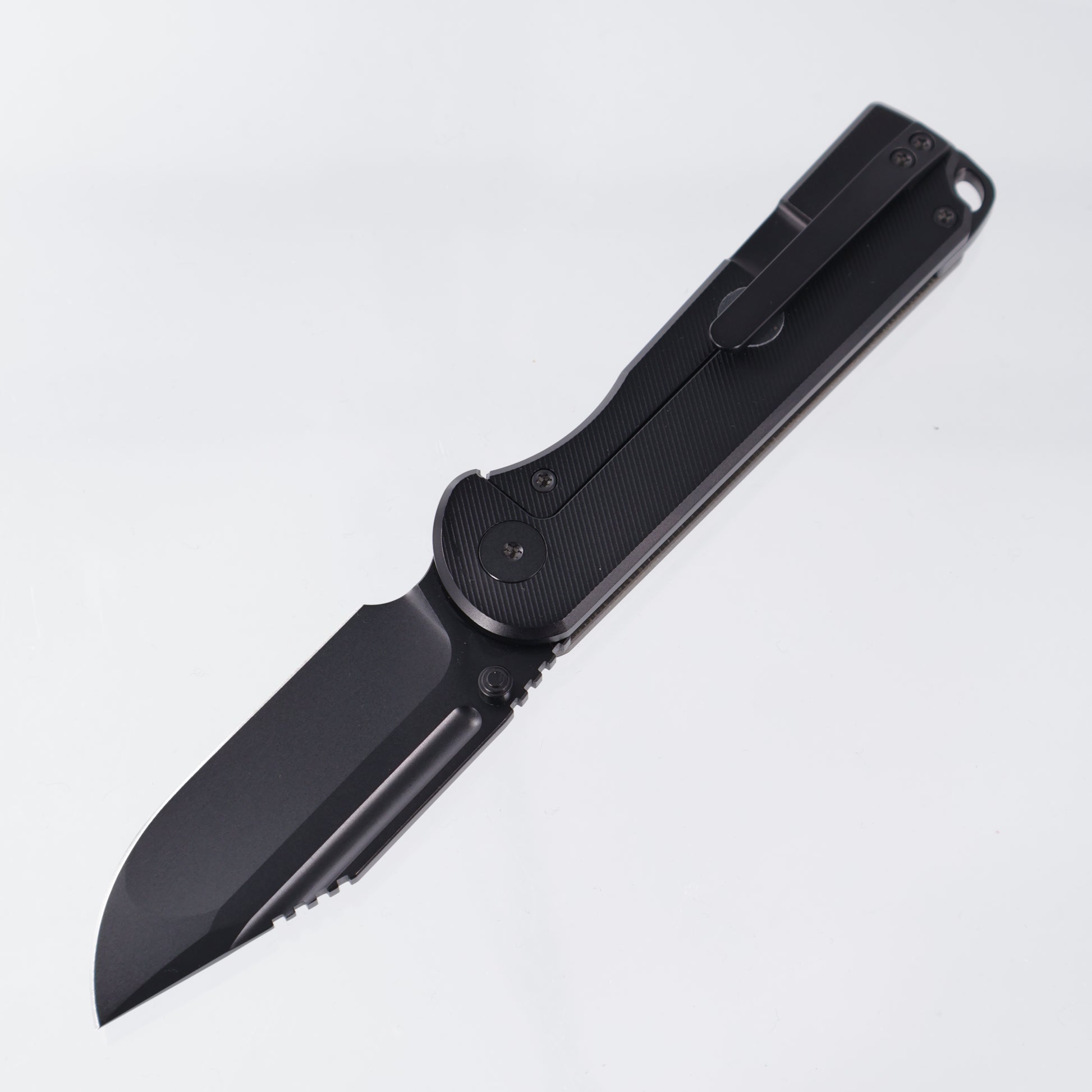 - Blade Steel: 14C28N, Hollow Grind, Black PVD Finish